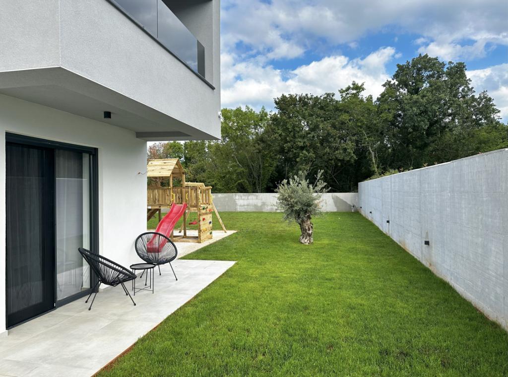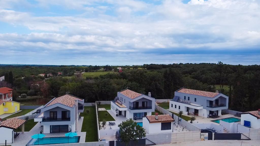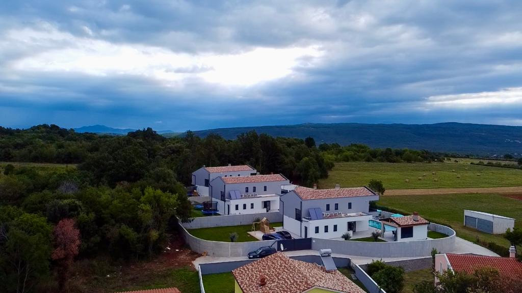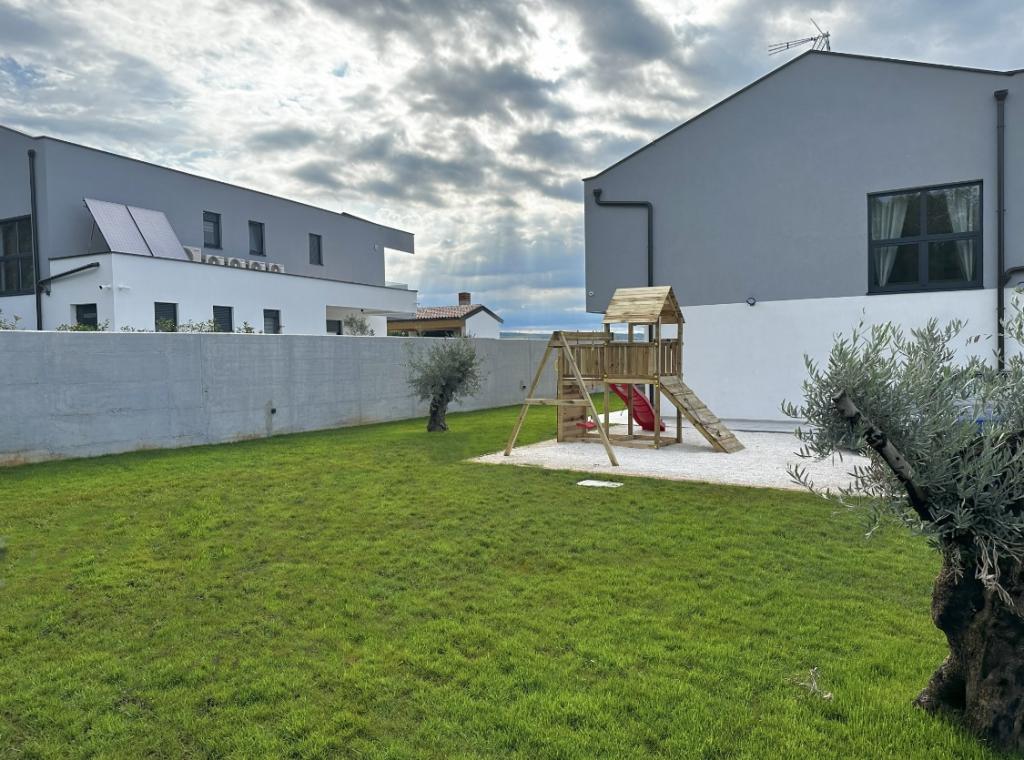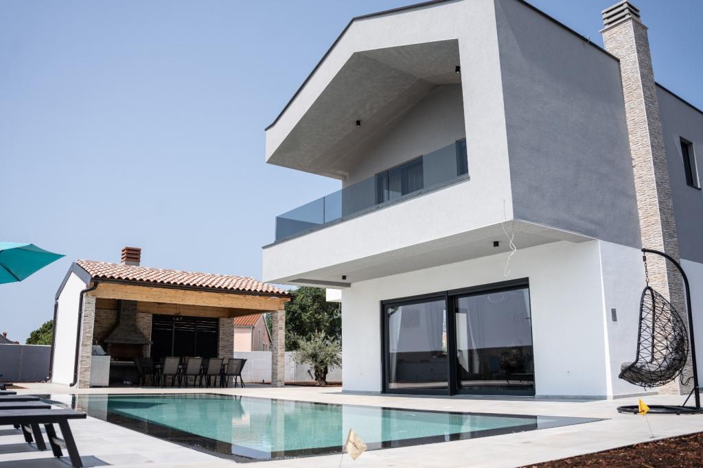 Deze prachtige villa ligt op een zeer rustige plek Rebići, Barban, slechts 2,5 km van zee, omgeven door natuurschoon en groen, en dient als zodanig voor een zorgeloze en perfecte vakantie, ver van stadsdrukte, lawaai en verkeer. Op heldere dagen kunt u vanaf het balkon op de eerste verdieping van het huis de zee zien. Elke kamer heeft een eigen terras voor momenten van privacy en rust wanneer dat nodig is. De villa is zeer modern ingericht waardoor u de sfeer en warmte van thuis ervaart, is in 2023 gebouwd in een zeer moderne stijl en beschikt tevens over een buitenfaciliteit met buitenkeuken, koelkast en twee grills, gas en hout -brandend. De omgeving is speciaal ingericht in een combinatie van een modern strand rond een overloopzwembad van 10 x 3,8 meter en een prachtig grasveld versierd met oude olijfbomen en diverse andere planten, waardoor een oase van ontspanning ontstaat. in de tuin staan ligstoelen, parasols en extra faciliteiten zoals tafeltennis, tafelvoetbal.