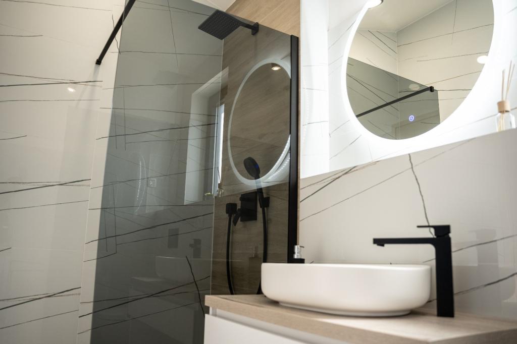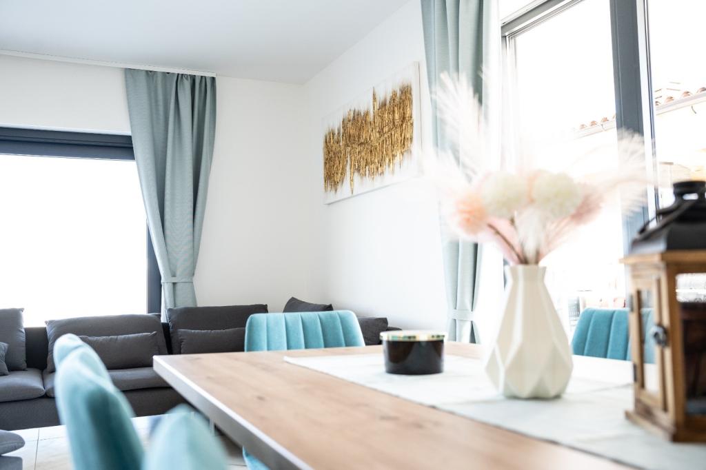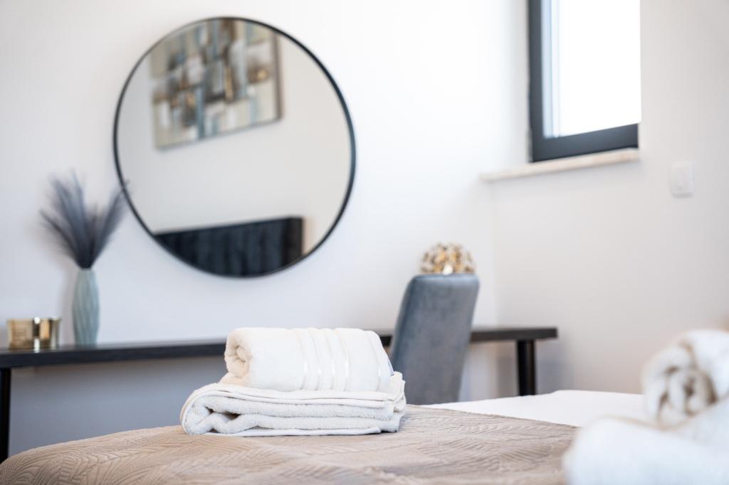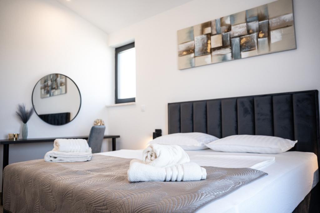 Deze prachtige villa ligt op een zeer rustige plek Rebići, Barban, slechts 2,5 km van zee, omgeven door natuurschoon en groen, en dient als zodanig voor een zorgeloze en perfecte vakantie, ver van stadsdrukte, lawaai en verkeer. Op heldere dagen kunt u vanaf het balkon op de eerste verdieping van het huis de zee zien. Elke kamer heeft een eigen terras voor momenten van privacy en rust wanneer dat nodig is. De villa is zeer modern ingericht waardoor u de sfeer en warmte van thuis ervaart, is in 2023 gebouwd in een zeer moderne stijl en beschikt tevens over een buitenfaciliteit met buitenkeuken, koelkast en twee grills, gas en hout -brandend. De omgeving is speciaal ingericht in een combinatie van een modern strand rond een overloopzwembad van 10 x 3,8 meter en een prachtig grasveld versierd met oude olijfbomen en diverse andere planten, waardoor een oase van ontspanning ontstaat. in de tuin staan ligstoelen, parasols en extra faciliteiten zoals tafeltennis, tafelvoetbal.