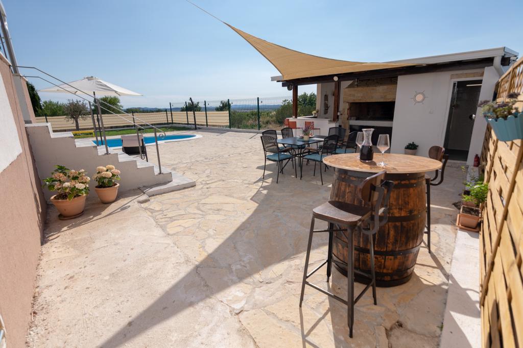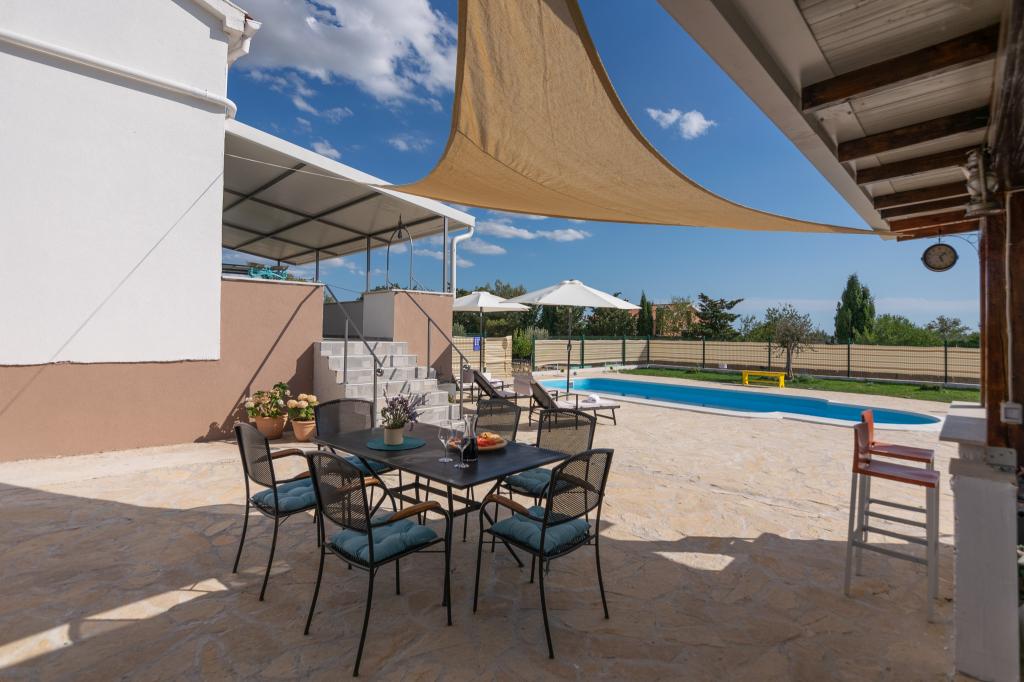 Ons volledig uitgeruste vakantiehuis biedt alle comfort en privacy die u nodig heeft, op slechts 20 minuten van Zadar, waar u prachtige stranden en interessante culturele bezienswaardigheden vindt. Het is gelegen in de rustige omgeving van het dorp Nadin, bekend om zijn wijn- en olijfgaarden. Een groot verwarmd zwembad, een open haard en een terras zorgen voor verfrissing en ontspanning. Op slechts 1-2 uur rijden liggen vier nationale parken en twee natuurparken. Als u wilt genieten van de geuren en geluiden van ongerepte natuur, is dit vakantiehuis de ideale keuze. De rust en stilte van het landelijke dorp, samen met het onmisbare aanbod van lokale topwijnen en olijfolie, zorgen ervoor dat onze gasten de nodige rust vinden.