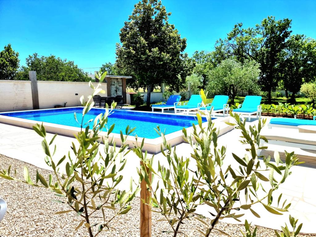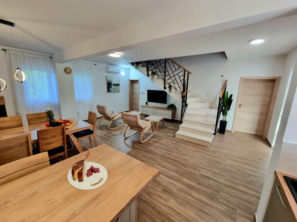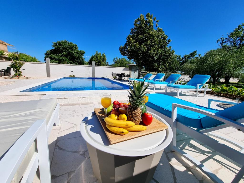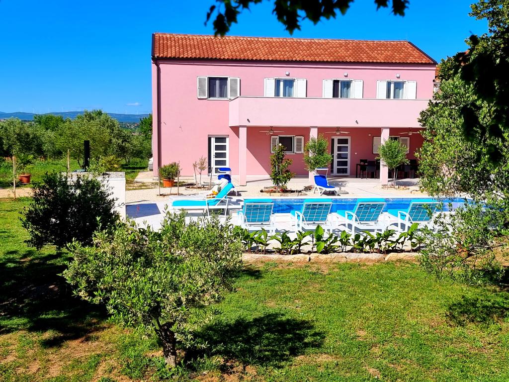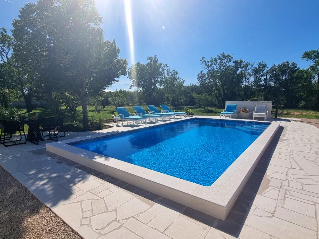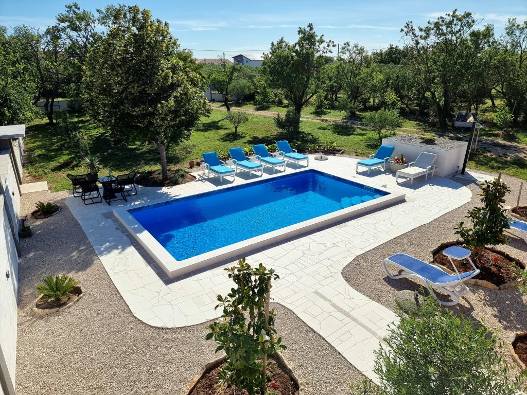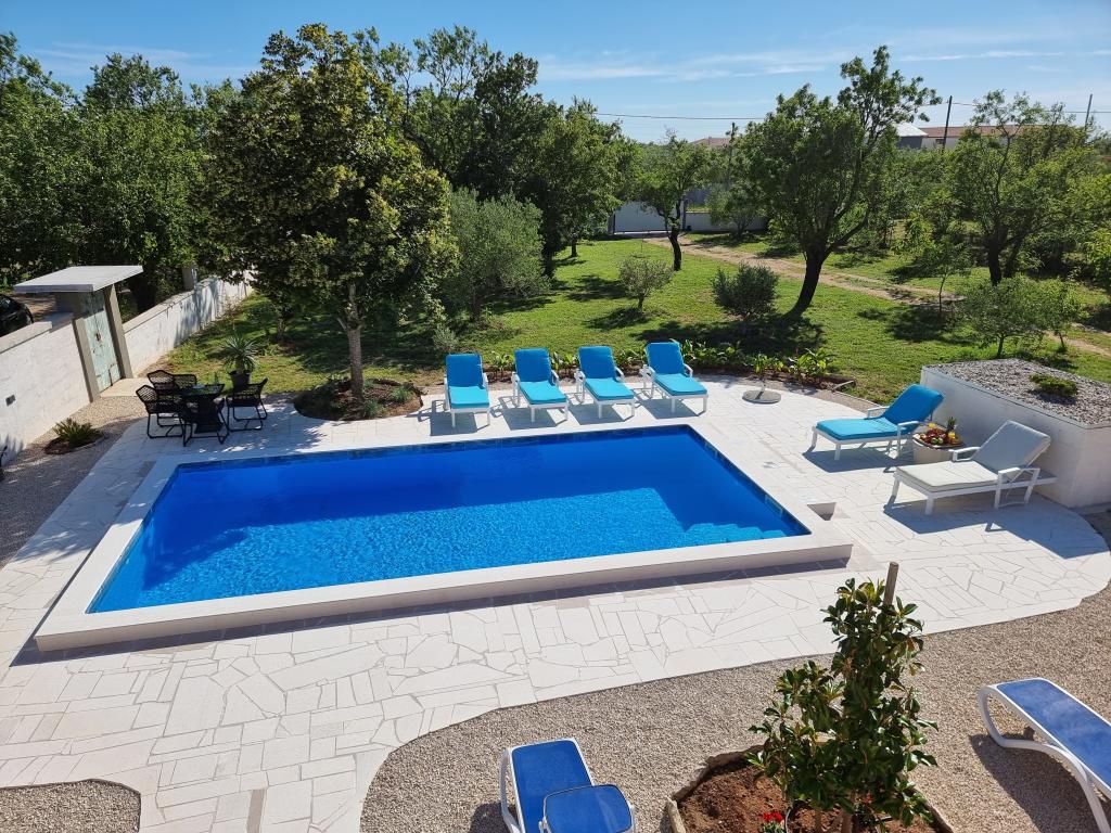 Een rustige en aangename hoek voor uw vakantie. Wij bevinden ons in het kleine dorpje Podlug, 6 km ten zuiden van Benkovac en 2 km van de afslag Benkovac van de snelweg A1. Wij bieden drie slaapkamers en drie badkamers. Op de begane grond bevinden zich een slaapkamer, een badkamer, een keuken en een woonkamer. Op de eerste verdieping bevinden zich twee slaapkamers, twee badkamers en nog een woonkamer, een speelkamer. Er is tevens een ruimte met open haard aanwezig. Het complex beschikt tevens over een buitenzwembad van 8 x 4 m.