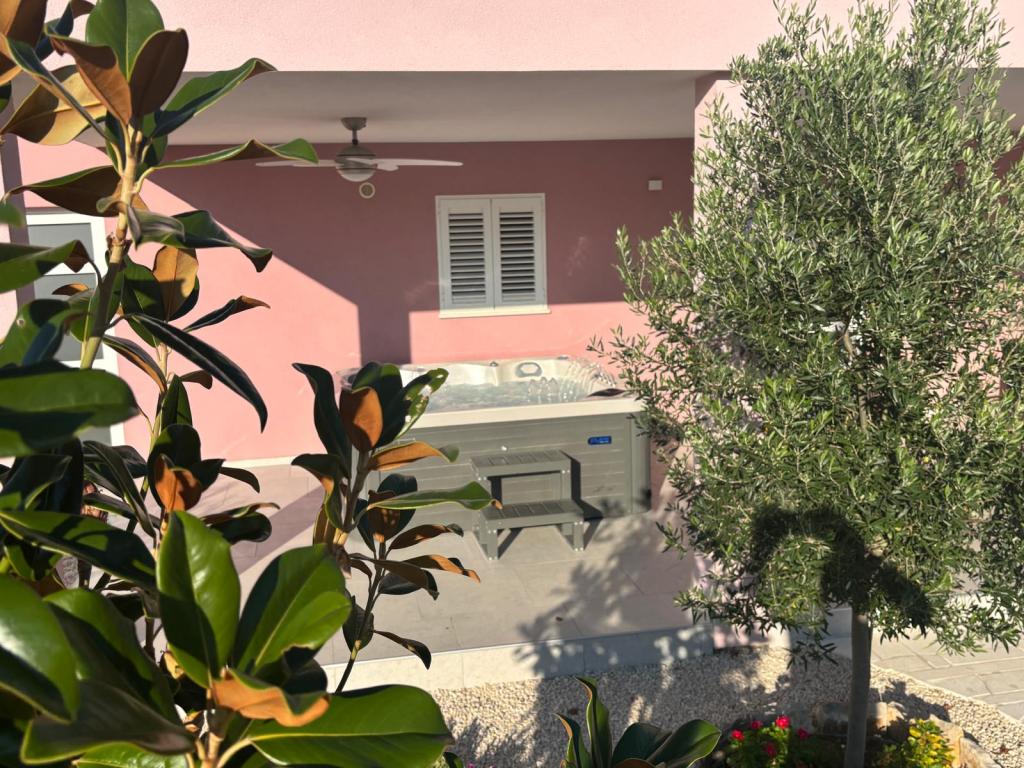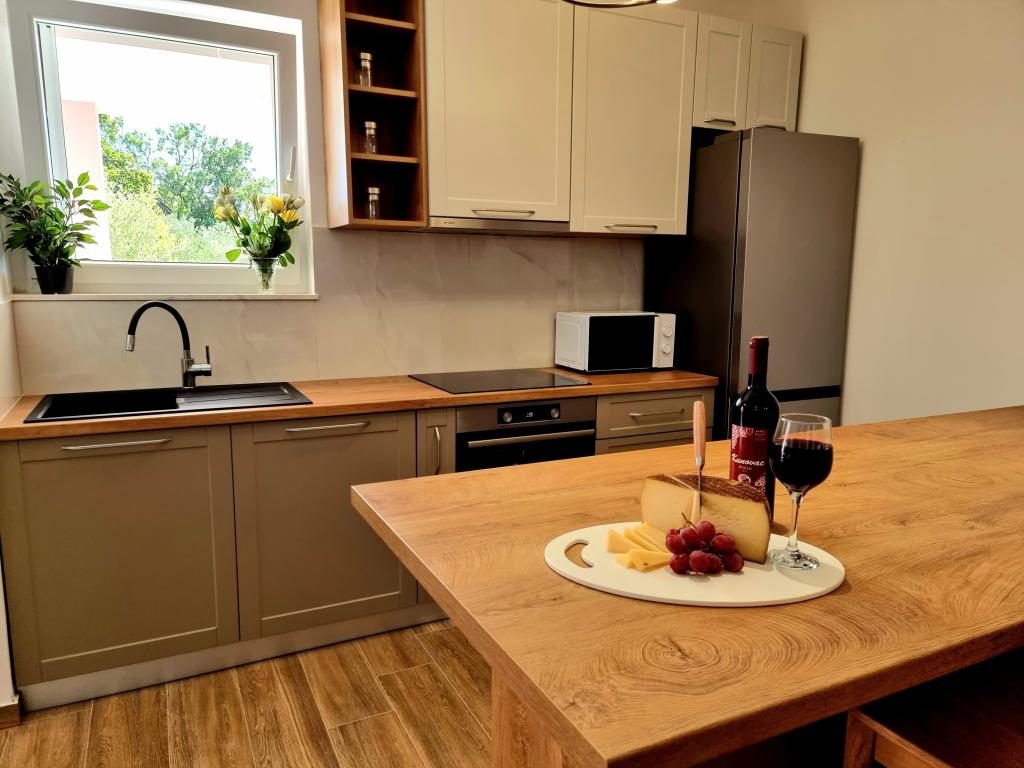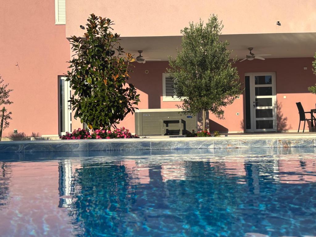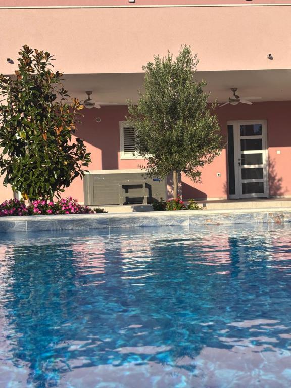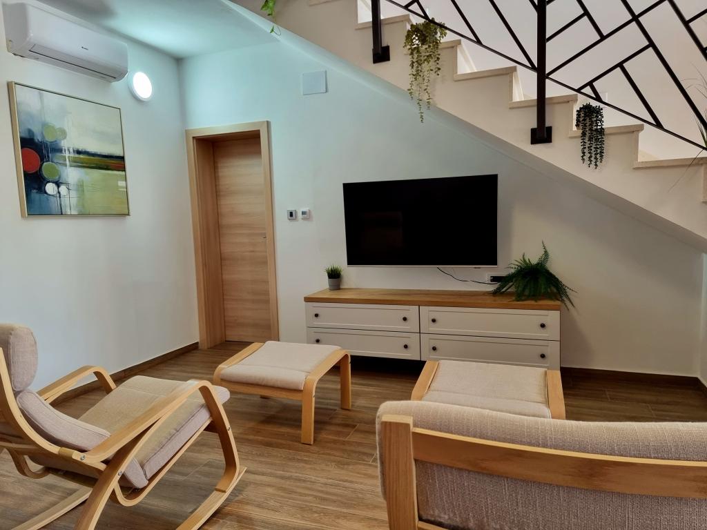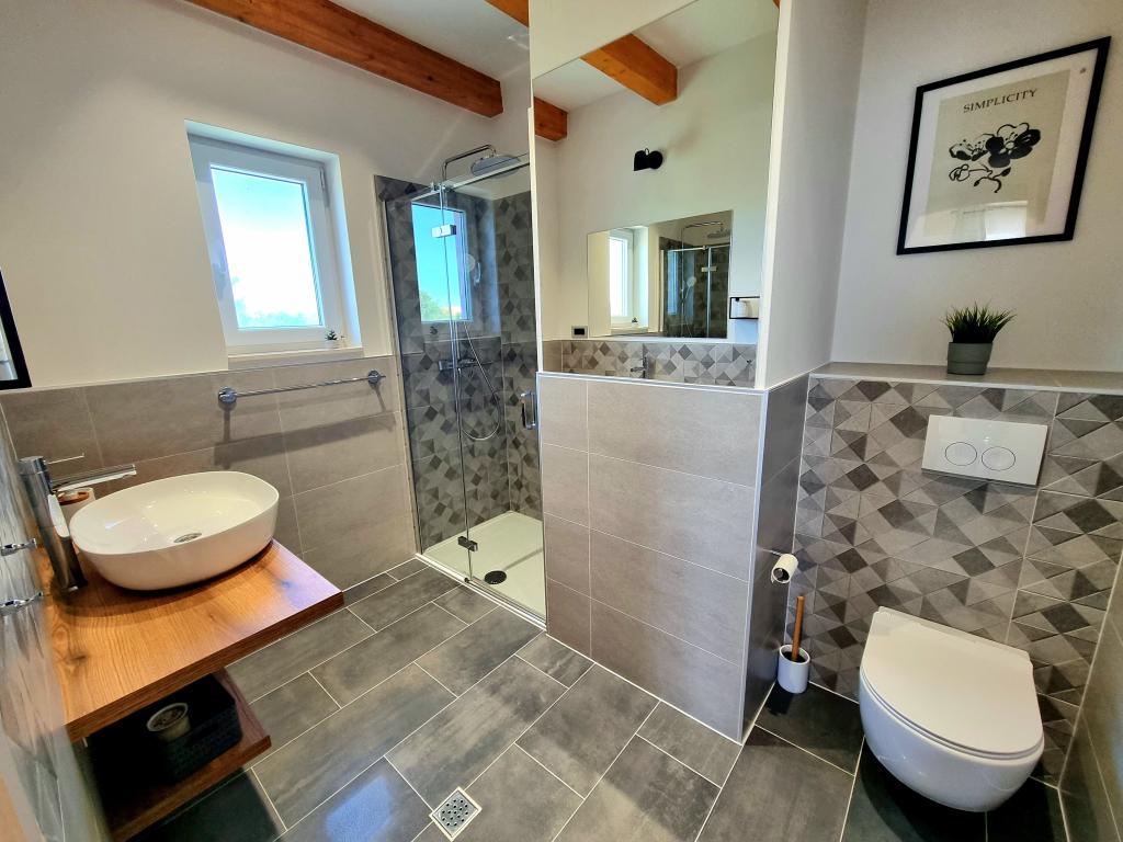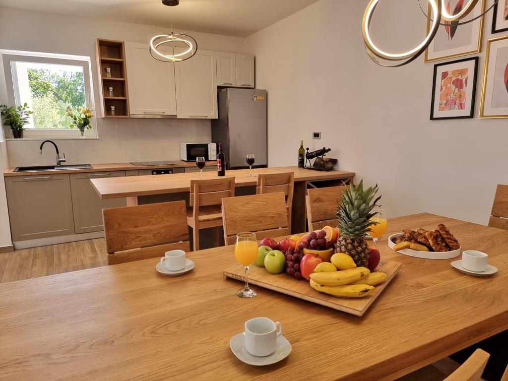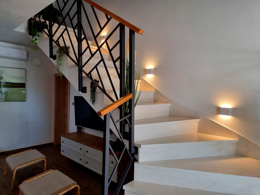 Een rustige en aangename hoek voor uw vakantie. Wij bevinden ons in het kleine dorpje Podlug, 6 km ten zuiden van Benkovac en 2 km van de afslag Benkovac van de snelweg A1. Wij bieden drie slaapkamers en drie badkamers. Op de begane grond bevinden zich een slaapkamer, een badkamer, een keuken en een woonkamer. Op de eerste verdieping bevinden zich twee slaapkamers, twee badkamers en nog een woonkamer, een speelkamer. Er is tevens een ruimte met open haard aanwezig. Het complex beschikt tevens over een buitenzwembad van 8 x 4 m.