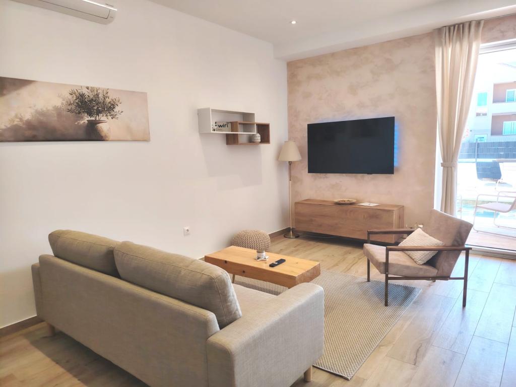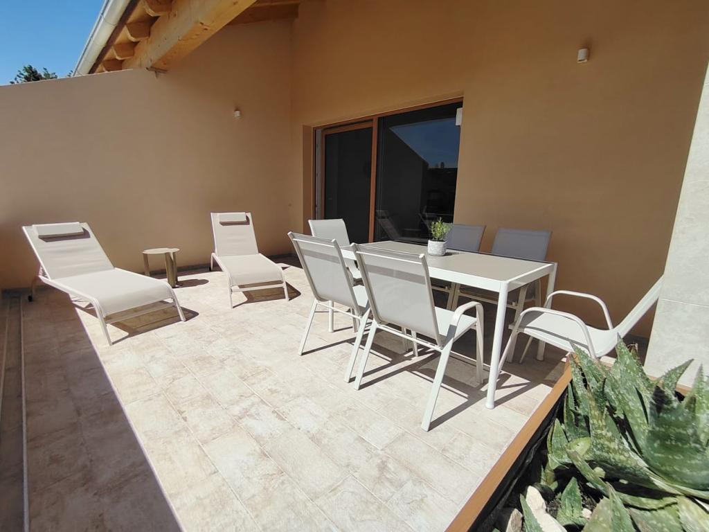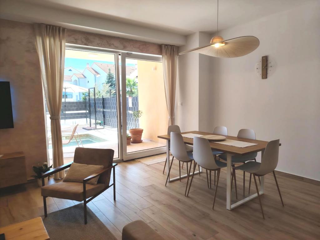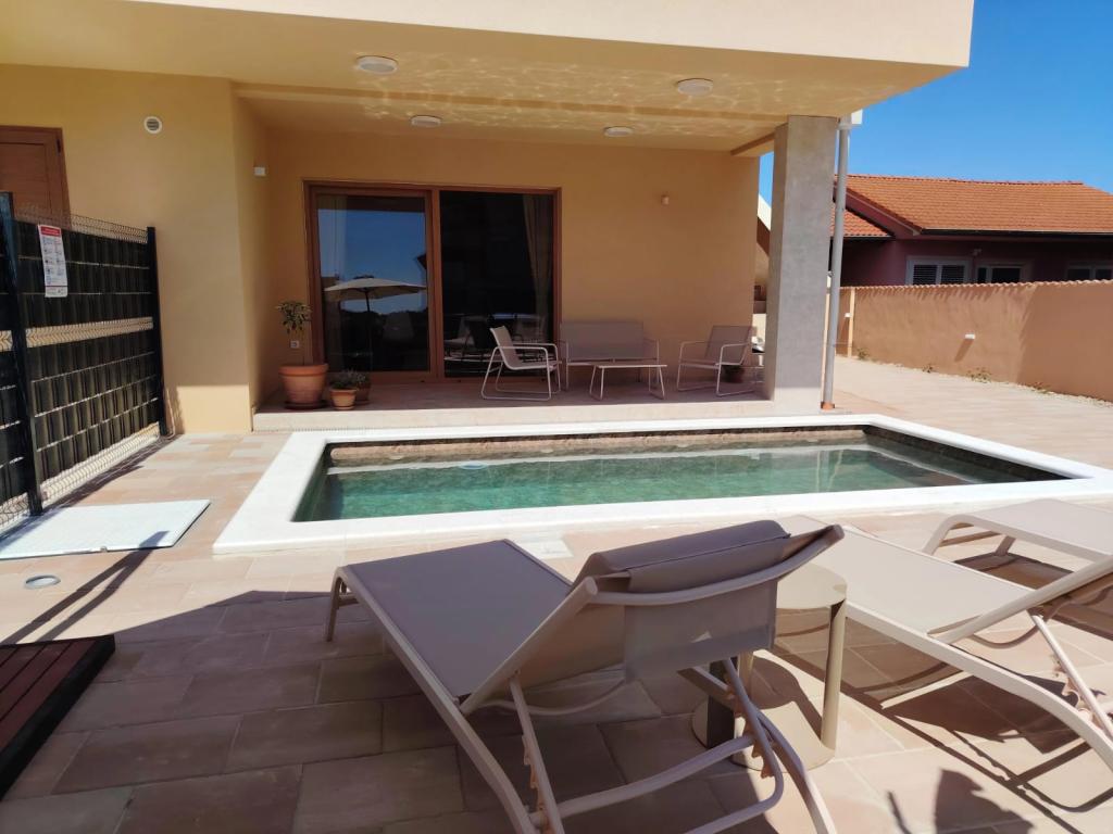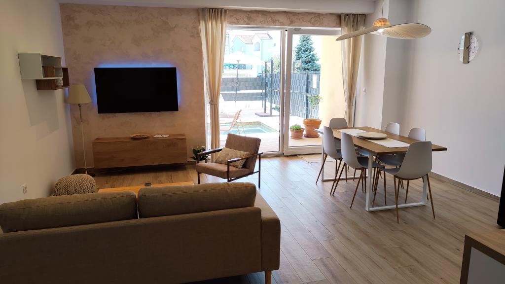 Nieuw gebouwd vakantiehuis met twee verdiepingen, een zwembad en twee aparte wooneenheden (begane grond en eerste verdieping). Elke wooneenheid is 95 vierkante meter groot en beschikt over drie slaapkamers, een keuken, een badkamer, een terras en een woonkamer. Er is parkeergelegenheid.