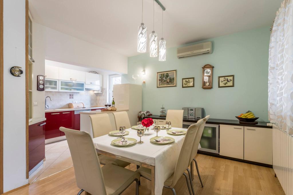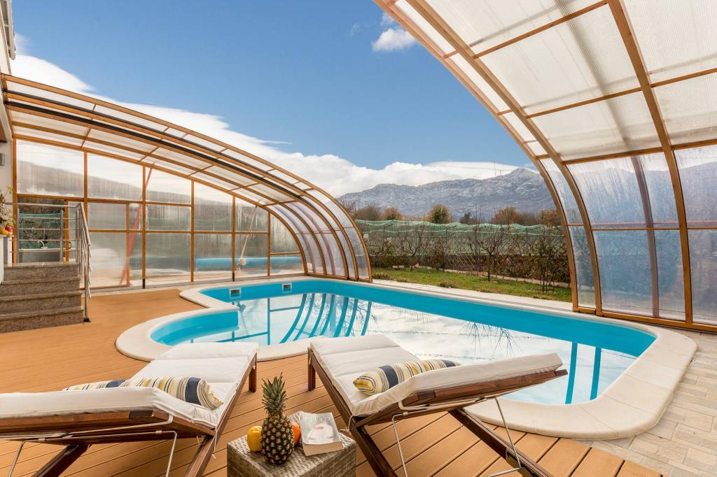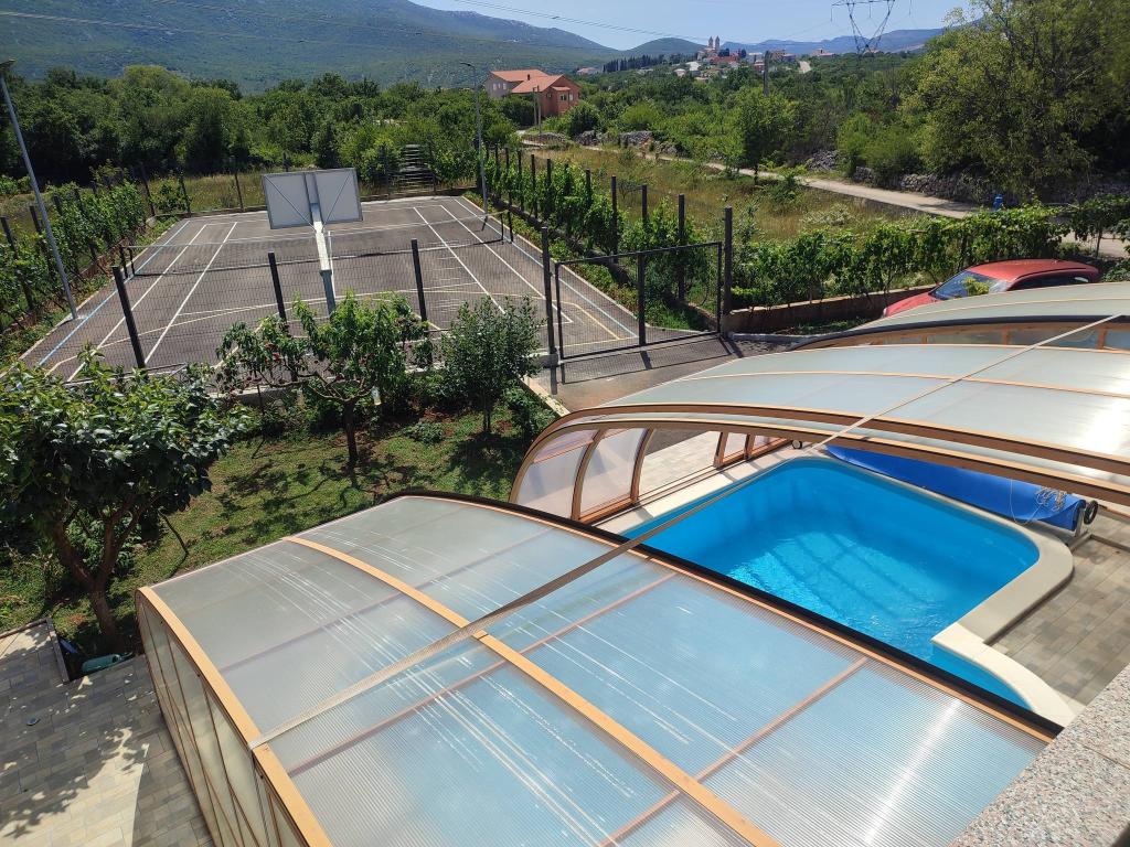 Geniet van een rustige vakantie in een ruim huis in Dugopolje, ideaal voor gezinnen, stellen of vriendengroepen. De accommodatie biedt een privézwembad, een grote tennisbaan met basketbalring en een uniek uitzicht op de bergen, wat zorgt voor de perfecte sfeer om te ontspannen. Het huis is van alle gemakken voorzien voor een aangenaam verblijf: een moderne keuken, een comfortabele woonkamer, slaapkamers met airconditioning en een ruime tuin die uitnodigt tot gezelligheid.