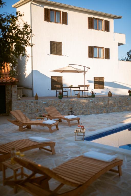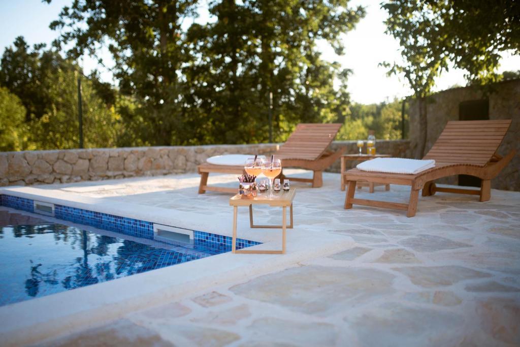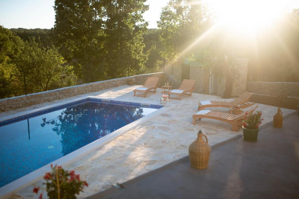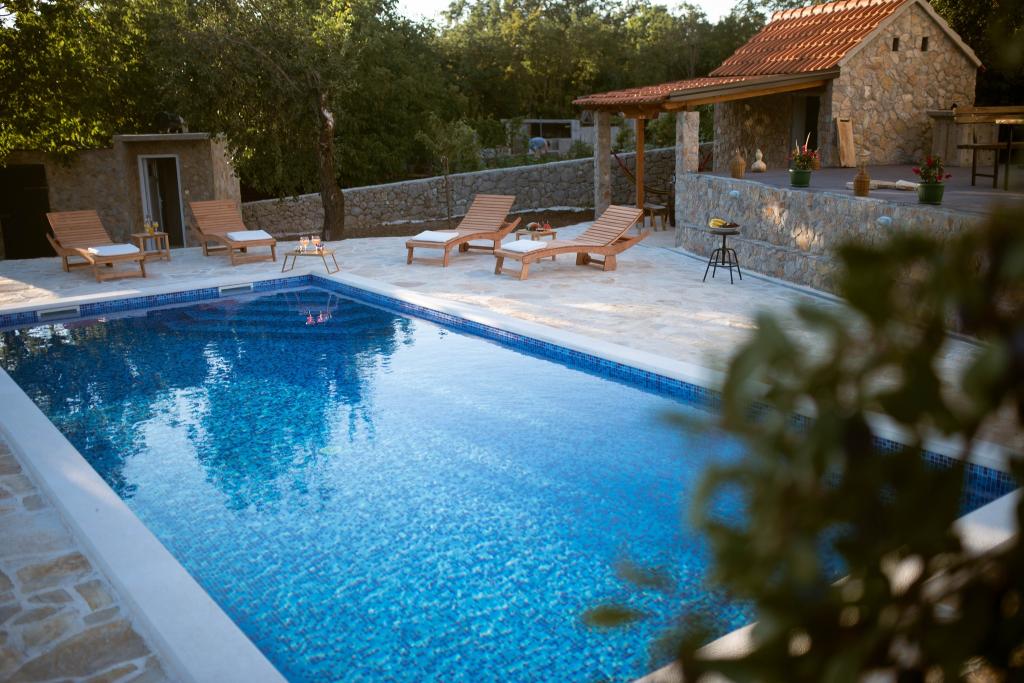 Naast de accommodatie kunnen gasten gebruikmaken van lokale seizoensproducten uit de tuin, zoals kersen, aardbeien, zure kersen, appels, peren, pruimen, rozemarijn, enz. Gasten kunnen op elk moment nuttige tips krijgen van de gastheer. Vakantiehuis Pearl in Stone is gelegen in het charmante stadje Gornji Vinjani en biedt een ruime tuin, rust, een privézwembad en uitzicht op de tuin en het bos. Het beschikt over 4 slaapkamers, een tv met een ruime keuze aan programma's, airconditioning en gratis wifi. Er is een volledig uitgeruste keuken met een vaatwasser en koelkast, een wasmachine en een badkamer met een douche in het toilet en een wasruimte. Het biedt een seizoensgebonden verwarmd buitenzwembad van 9x4 meter met een aparte ruimte voor spelletjes en entertainment, en een stenen huisje met een barbecue. Gasten kunnen ontspannen in de pr