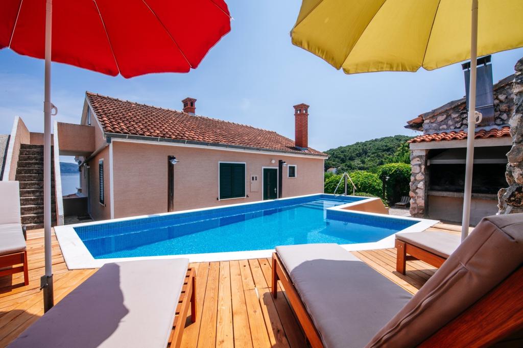 Gezinswoning op 2 verdiepingen. 1. 5 km van het centrum van Mali Iz, verhoogde ligging, 30 m van de zee, 30 meter van het strand. Voor alleengebruik: terrein 600 m2, tuin op verschillende niveaus - planten en bloemen, binnenplaats, openluchtzwembad (3 x 8 m, 130 cm diepte, 17. 05. 09 -27.) Met ingebouwde stappen. Onregelmatig zwembad. Patio, terras (15 m2). In het huis: internetaansluiting, wasmachine. Toegangsweg tot 40 m van het huis. Parkeerplaats op 40 m. Winkel 150 m, restaurant 100 m, kiezelstrand, rotsstrand 40 m. Whirlpool en sauna. Het perceel is naast het huis nog en prachtig ingerichte taverne met een barbecue, oven, grote eettafel, een bar, een vriezer, een koelkast voor een drankje, een pooltafel, darts en 2 toiletten.