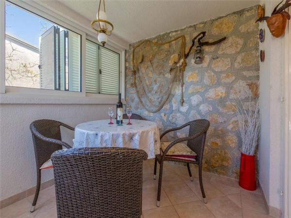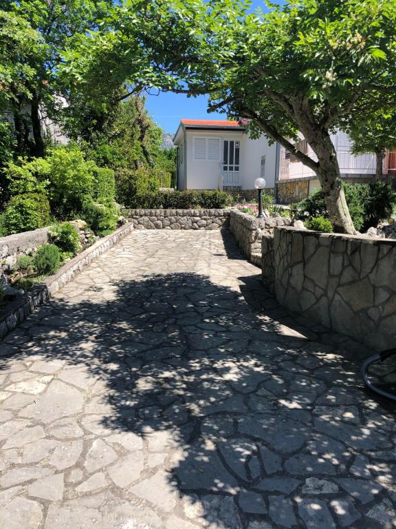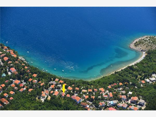 Volledig ingericht vakantiehuis van 50 m2 met een tuin van 240 m2, beveiligde parkeerplaats voor 2 voertuigen, op slechts 70 m van het natuurlijke kiezelstrand met uitzicht op het eiland Krk. Gelegen in een rustige omgeving die geschikt is voor perfecte rust en ontspanning, bestaat het uit een slaapkamer, een ruime eetkamer en een aparte keuken en een grote woonkamer en twee terrassen omgeven door groen.