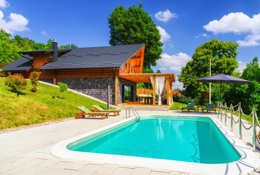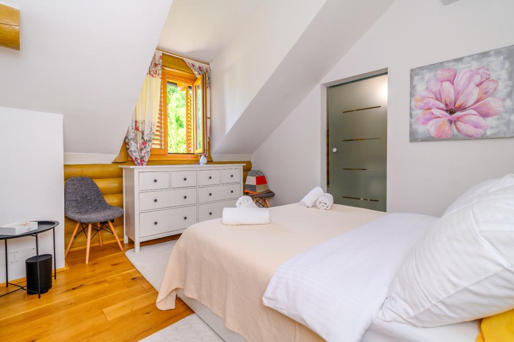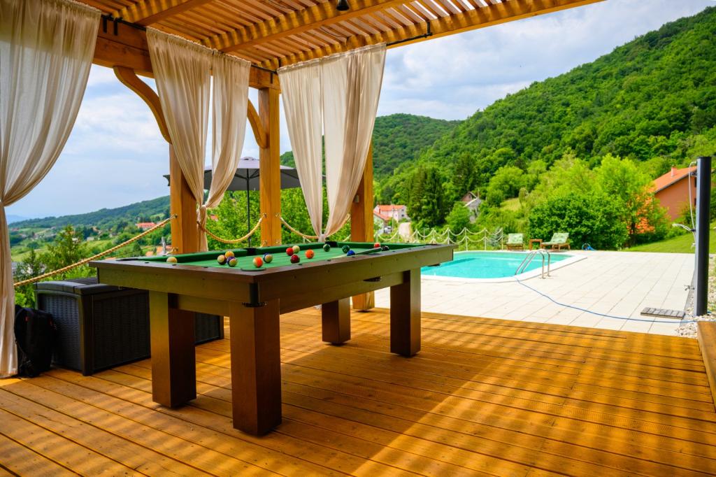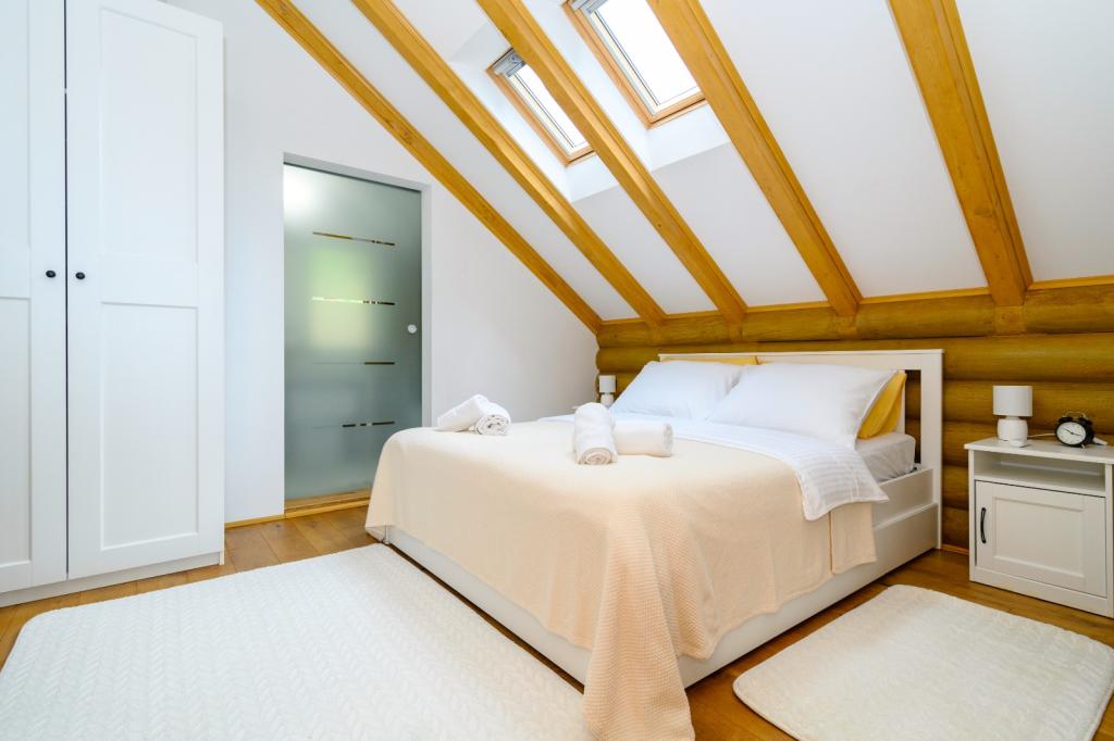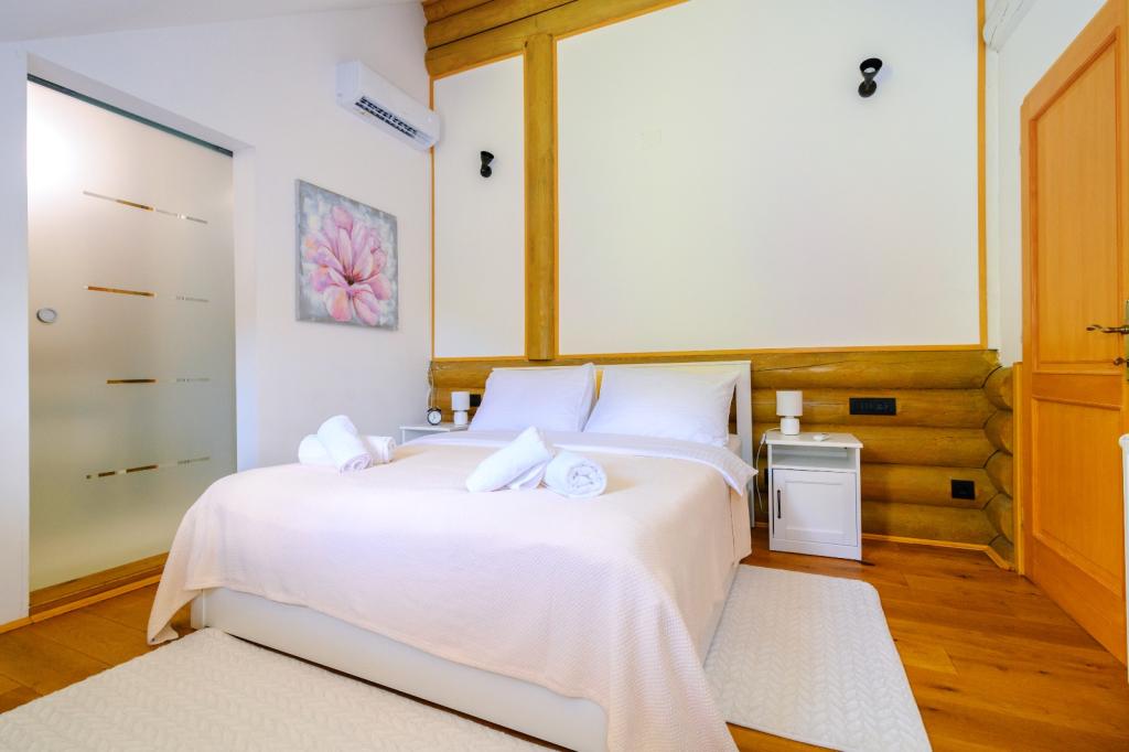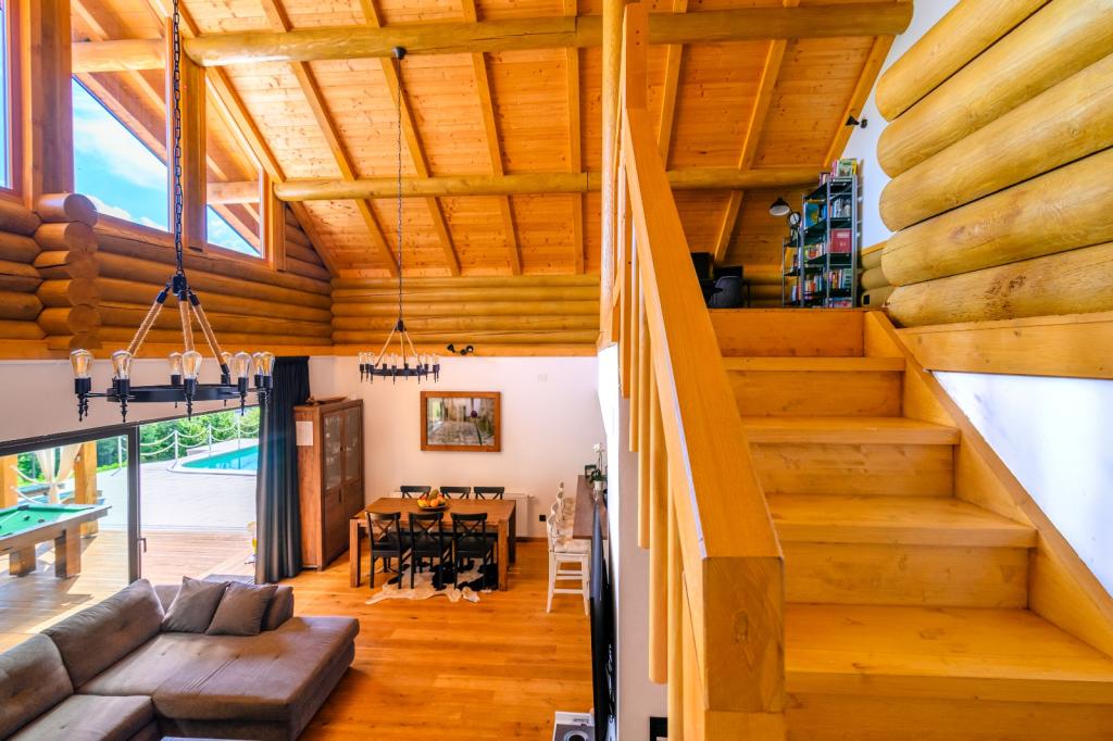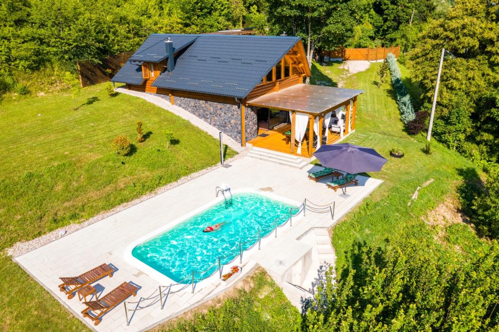 Niet ver van Zagreb, op slechts 44 km afstand en 350 meter boven de zeespiegel, aan de voet van het Japetić-gebergte, ligt het houten huis Wellspring in Sveta Jana (Gorica Svetojanska). Een deel van het perceel (van in totaal 2.700 m2) is opgenomen in het beschermde gebied van het natuurpark Žumberak en is als zodanig een bijzonder inspirerende vakantieplek. Er zijn verschillende natuurlijke bronnen van drinkwater in het dorp zelf en het eerste grotere dorp Jastrebarski ligt op 9 km afstand. Het houten huis Wellspring bestaat uit twee verdiepingen met gratis wifi. Op de benedenverdieping is er een open woonkamer met open haard, een goed uitgeruste eetkamer en keuken, een slaapkamer, een spa met een Finse sauna en jacuzzi, een inloopdouche en een toilet. Op de bovenverdieping bevinden zich twee slaapkamers met eigen badkamers en ruimte op de galerij om uit te rusten/lezen. Naast de open haard was er ook centrale verwarming voor de koude wintermaanden, evenals vloerverwarming in de spa. Het overdekte terras met uitzicht op het zuiden is 40 m2 en een verwarmd zwembad met een zonnebank, douche en ligbedden.