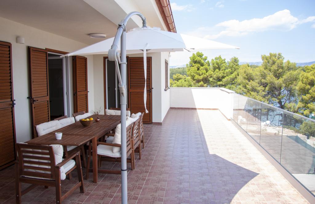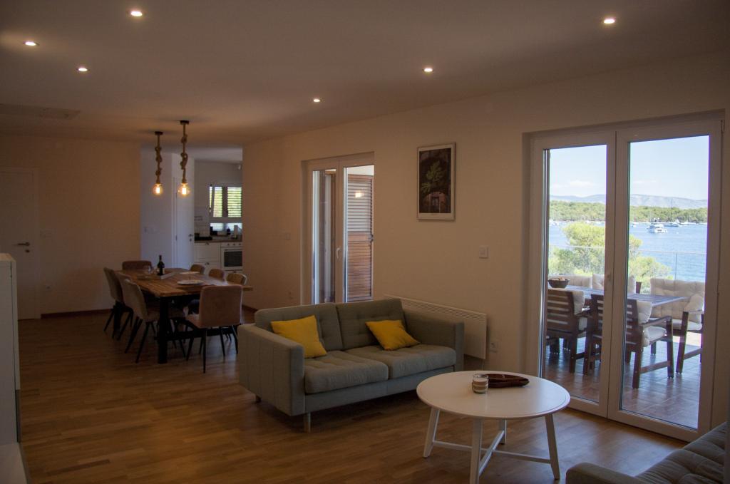 De woning is gecertificeerd als energiezuinig gebouw, aangepast voor een comfortabel verblijf, gecategoriseerd met 4 sterren, ruime kamers met een groot terras en een uniek uitzicht. De villa is uitgerust voor een comfortabel verblijf, zelfs buiten het zomerseizoen. Elk van de 3 kamers heeft een eigen badkamer, toilet en airconditioning. De woonruimte en de grote tuin van 1200 m2 zijn aangepast voor rolstoelgebruikers, verplaatsingen met kleine kinderen en mensen met beperkte mobiliteit. De keuken is voorzien van alle benodigde apparatuur, waaronder een espressomachine. Gasten hebben de beschikking over een gratis garage voor 2 auto's, een buitengrill en ligstoelen. Kiezelstrand op 30 meter afstand met georganiseerde toegang, zandstrand op 100 meter afstand, snelle toegang tot de openbare weg, op 5 minuten afstand van de bevolkte steden Jelsa en Vrbosko. Dichtbij medische zorg, apotheek, goed gevulde winkels zee kunt u deelnemen aan sportieve activiteiten, hardlopen, wandelen, fietsen of aangename wandelingen maken. De vredige omgeving maakt een vredige slaap en rust mogelijk