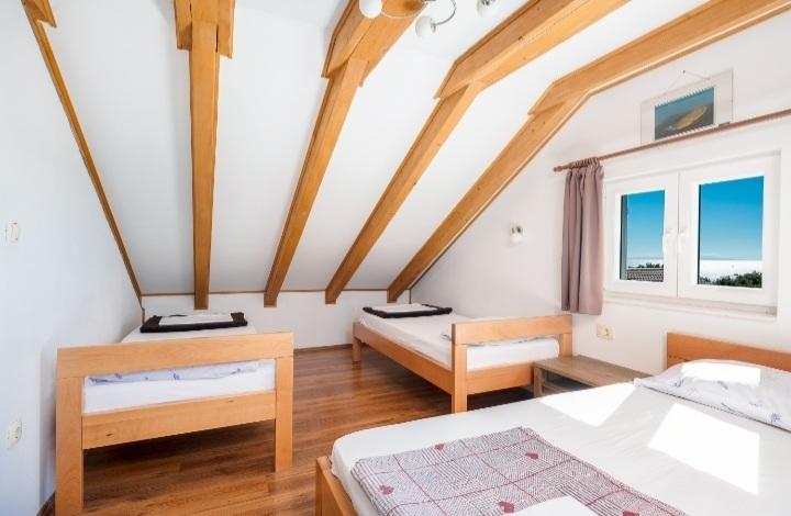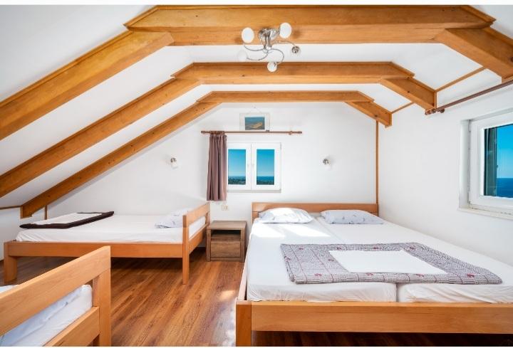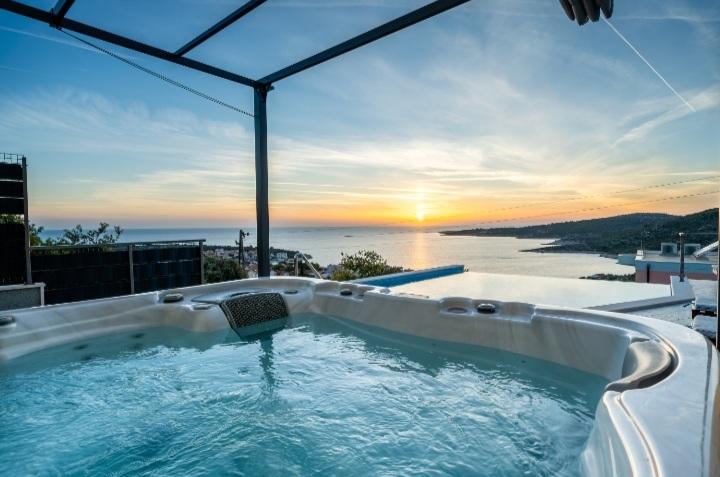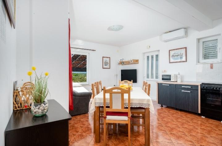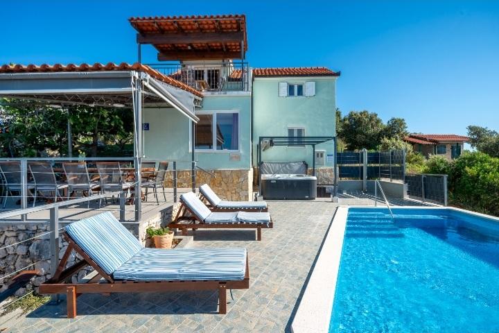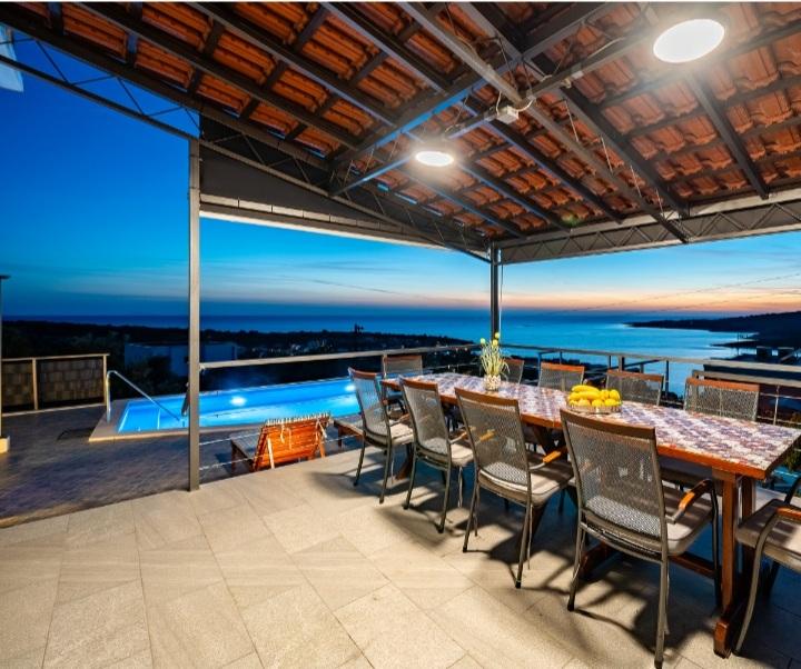 Het vakantiehuis met zwembad en verwarmd massagebad ligt op een heuvel met een prachtig uitzicht op de open zee. Het is ideaal voor een rustige vakantie voor een groot gezin of een groep vrienden. Tegelijkertijd zijn sport- en entertainmentfaciliteiten gemakkelijk beschikbaar; aangelegde fietspaden, zand-, beton- en grindstranden naast de kristalheldere zee. Restaurants en nachtclubs liggen op 5 tot 10 minuten rijden met de auto. Het huis heeft in totaal tien bedden en twee slaapbanken, twee moderne keukens, twee badkamers en twee toiletten. De keukens zijn uitgerust met serviesgoed voor de bereiding en keukengerei voor het serveren van maaltijden. In één keuken is er een vaatwasser, koffiezetapparaat, magnetron, waterkoker, broodrooster. Gasten hebben de beschikking over twee overdekte terrassen, een groot open terras naast het zwembad, een barbecue, parkeerplaats voor drie auto's, een zwembad (40 m2), ligstoelen, een buitendouche en een omheinde speeltuin voor kinderen. Eindschoonmaak, airconditioning, zwembadonderhoud, toeristenbelasting en internet zijn bij de prijs inbegrepen. Welkom!
