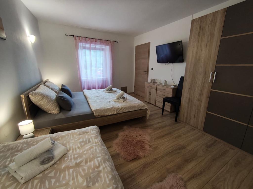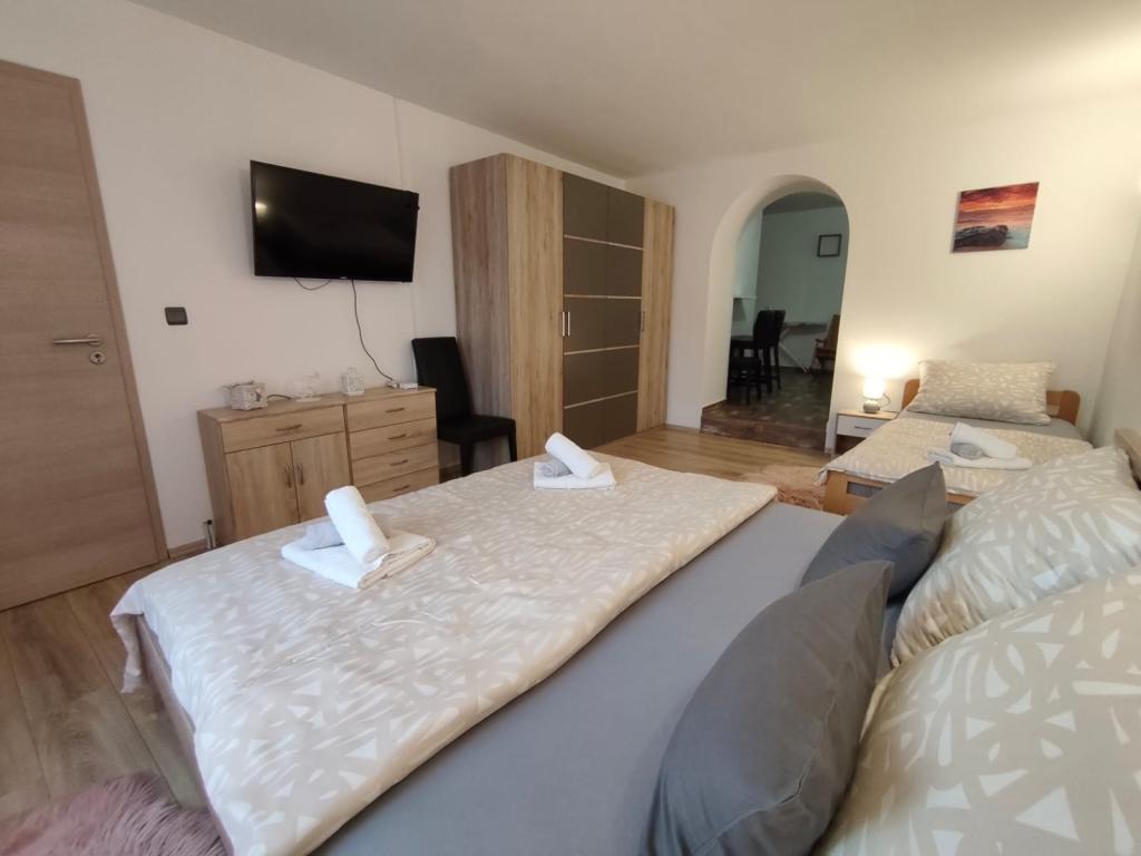 Dit prachtige huis is gelegen in het kleine en rustige plaatsje Križišće in het achterland van Kraljevica. De Kvarnerbaai. Een ideale plek als u op zoek bent naar een rustige familievakantie. We zijn gelegen in een vallei, dus de Krk-brug is slechts 3 km verwijderd, Crikvenica op 10 km afstand en het dichtstbijzijnde strand op 5 km afstand (fijn grind - Jadranovo). Bezoek het meer Tribalj of de Plitvicemeren. Maak kennis met de stad Kraljevica of Rijeka. Het huis heeft 3 slaapkamers (4 bedden, een kinderbedje) en een hoekslaapbank in de woonkamer. 2 badkamers, 1 toilet. Ook 3 airconditioners, 4 smart-tv's. Fitnessapparatuur. Uitgeruste keuken (magnetron, broodrooster, koffiezetapparaat, waterkoker...). Babyvoeding beschikbaar. Het huis heeft een binnentaverne met een grill waar u bij slecht weer heerlijk kunt grillen. Buitenhaard/grill. Ook een buitendouche op zonne-energie. Het zwembad wordt verwarmd door zonne-energie en de jacuzzi verwarmt tot 40 graden. Er is een overdekte privéparkeerplaats voor twee auto's beschikbaar. Huisdieren zijn gratis welkom (maximaal twee). Neem voor meer informatie contact met ons op. Bedankt voor uw vertrouwen. Familie Kresić.