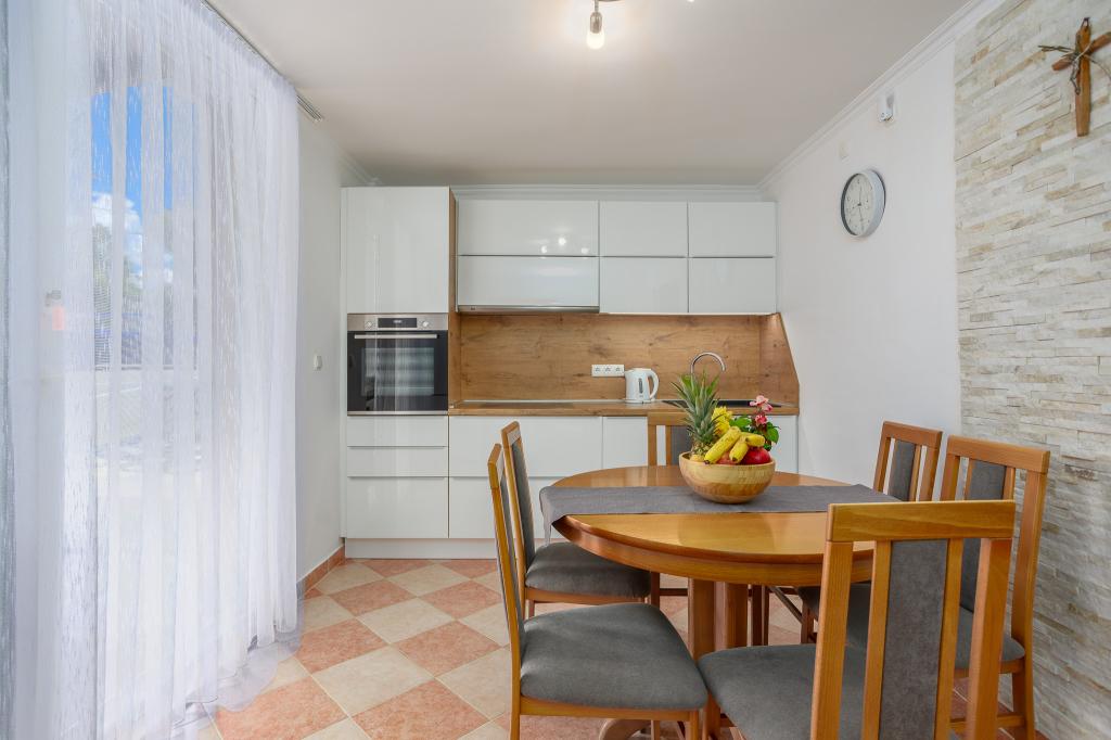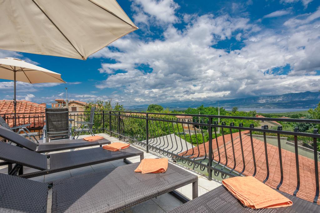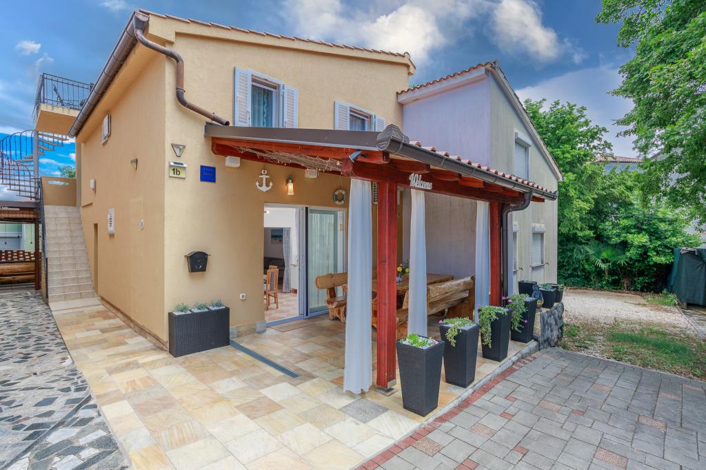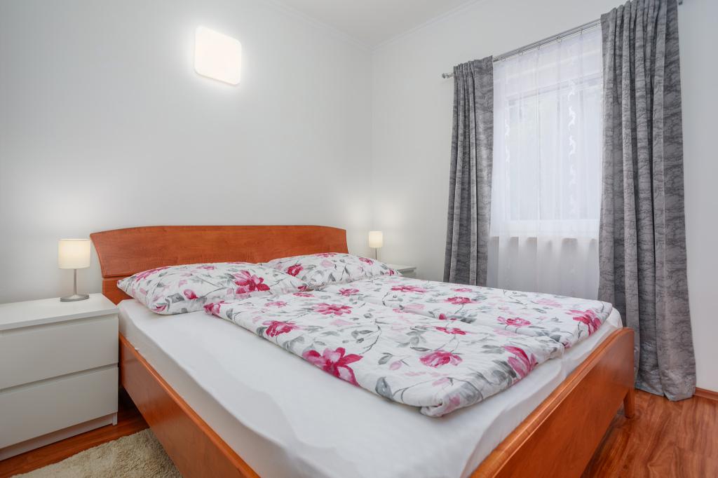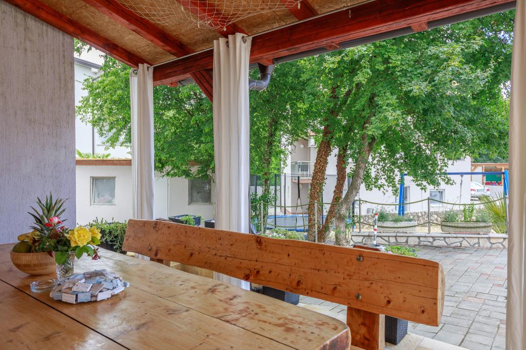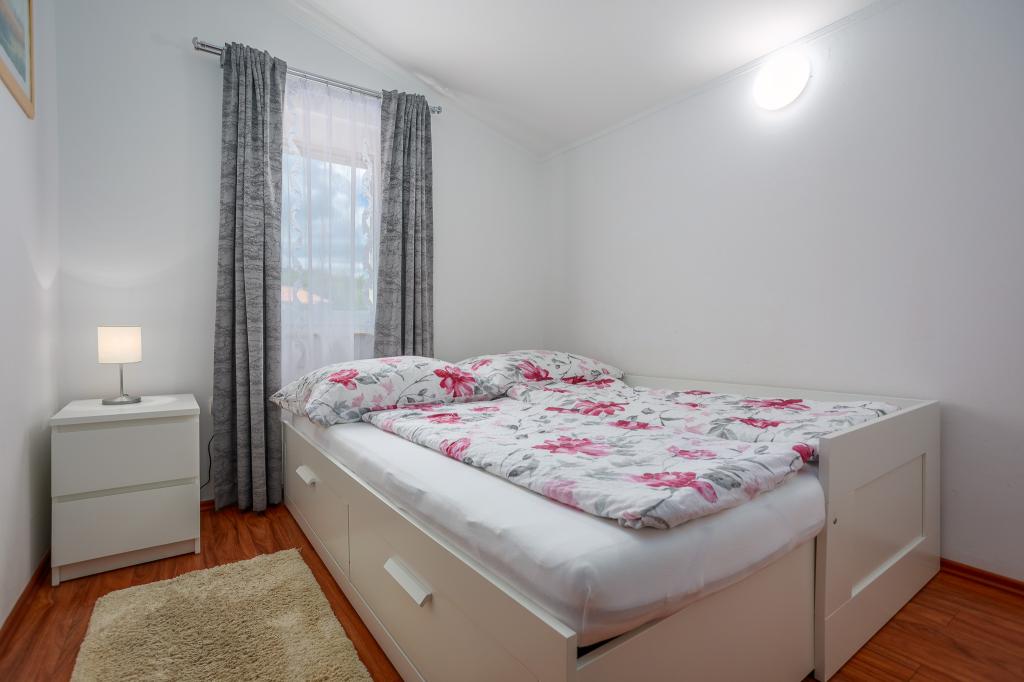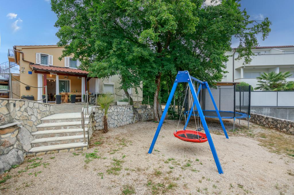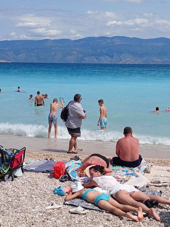 Wij nodigen u uit om uw familievakantie door te brengen op het eiland Krk in het familiehuis Margareta. Wij bieden u een volledig en modern ingericht huis voor twee gezinnen, verdeeld over twee aparte appartementen, geschikt voor 8 tot 10 personen, op een perceel van 900 m². Ons familiehuis Margareta is een viersterrenhuis, gelegen op 200 m boven zeeniveau, op slechts twee minuten van de baai van Soline. Vele andere bezienswaardigheden van het eiland Krk zijn binnen een paar minuten rijden te bereiken. Het huis bestaat uit 4 slaapkamers met tweepersoonsbedden, twee badkamers/toiletten en een extra toilet op de begane grond, twee keukens en twee woonkamers met een slaapbank voor 1-2 personen. Daarnaast beschikt het huis over 4 terrassen, een barbecue en een kinderspeelplaats met een trampoline en een schommel. Het huis is gelegen in de nederzetting Vila za odmor in Gornja Hlapa, vlakbij Soline, gemeente Dobrinj op het eiland Krk. Er is parkeergelegenheid voor 5 auto's op het erf. Er is ook een prachtig dakterras voor romantische zonsondergangen en zonnebaden met uitzicht op de Kvarnerzee. Geniet van Krk.