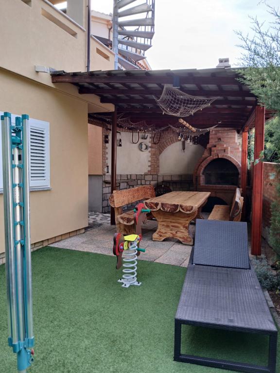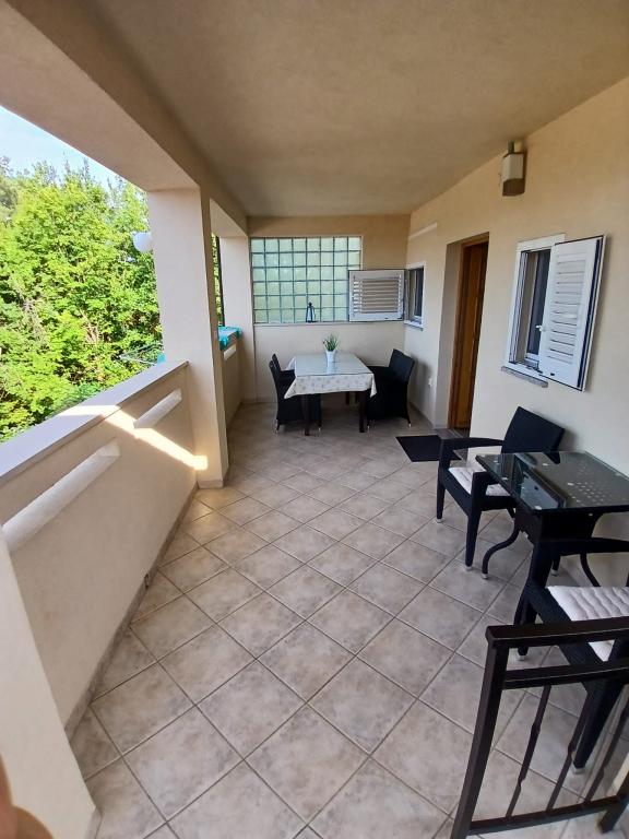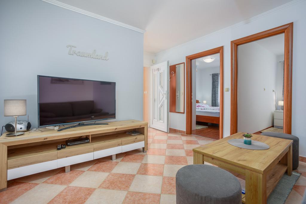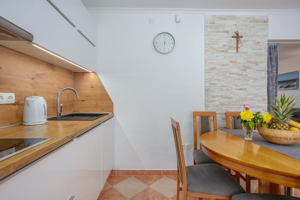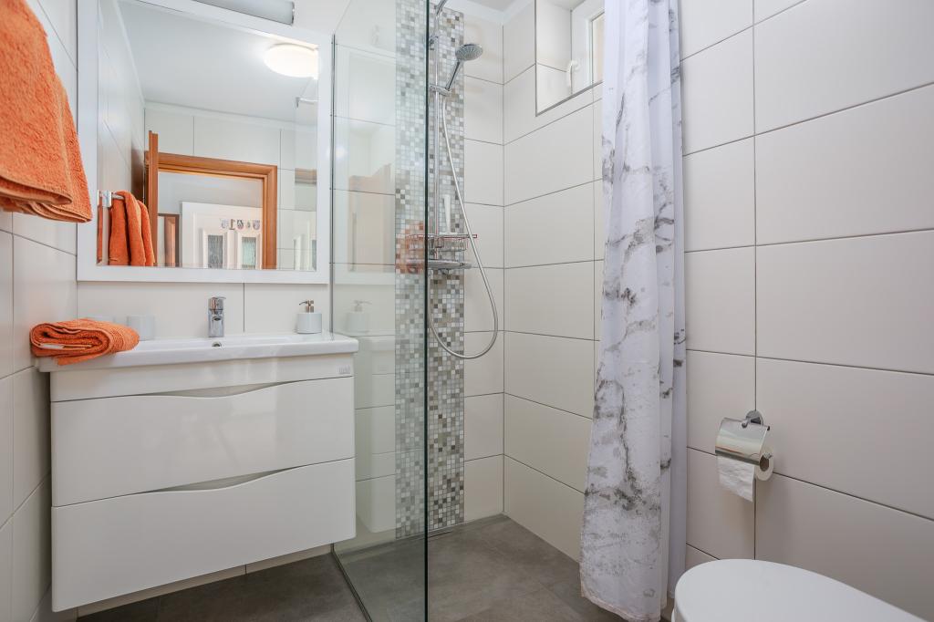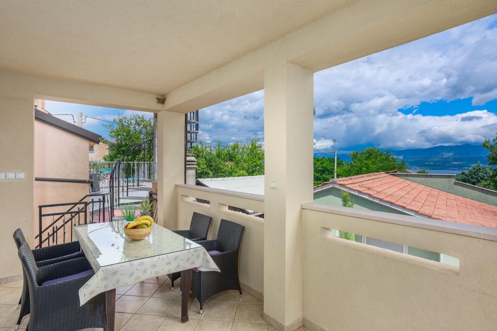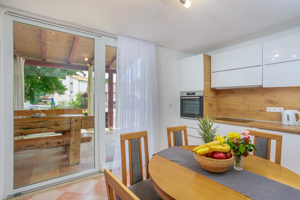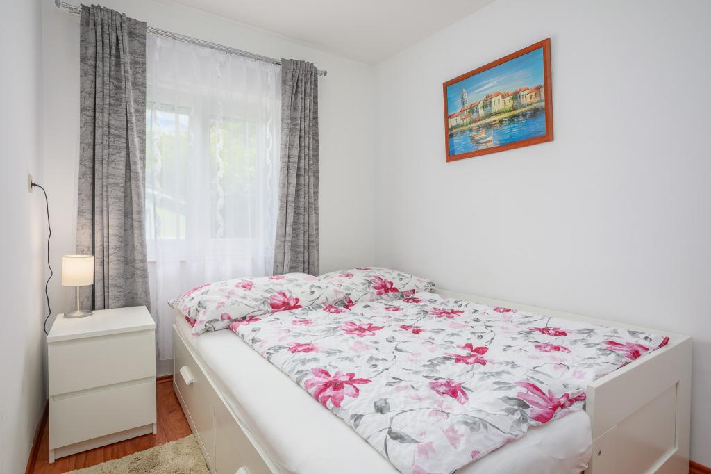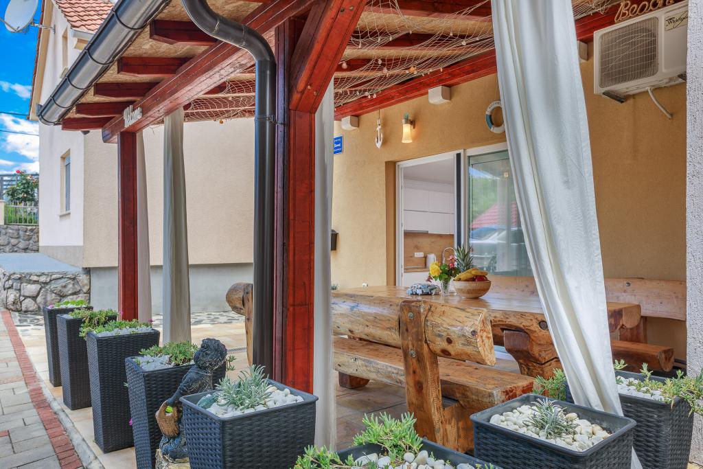 Wij nodigen u uit om uw familievakantie door te brengen op het eiland Krk in het familiehuis Margareta. Wij bieden u een volledig en modern ingericht huis voor twee gezinnen, verdeeld over twee aparte appartementen, geschikt voor 8 tot 10 personen, op een perceel van 900 m². Ons familiehuis Margareta is een viersterrenhuis, gelegen op 200 m boven zeeniveau, op slechts twee minuten van de baai van Soline. Vele andere bezienswaardigheden van het eiland Krk zijn binnen een paar minuten rijden te bereiken. Het huis bestaat uit 4 slaapkamers met tweepersoonsbedden, twee badkamers/toiletten en een extra toilet op de begane grond, twee keukens en twee woonkamers met een slaapbank voor 1-2 personen. Daarnaast beschikt het huis over 4 terrassen, een barbecue en een kinderspeelplaats met een trampoline en een schommel. Het huis is gelegen in de nederzetting Vila za odmor in Gornja Hlapa, vlakbij Soline, gemeente Dobrinj op het eiland Krk. Er is parkeergelegenheid voor 5 auto's op het erf. Er is ook een prachtig dakterras voor romantische zonsondergangen en zonnebaden met uitzicht op de Kvarnerzee. Geniet van Krk.