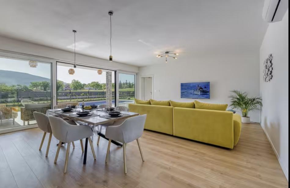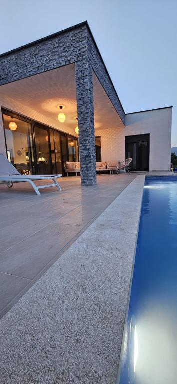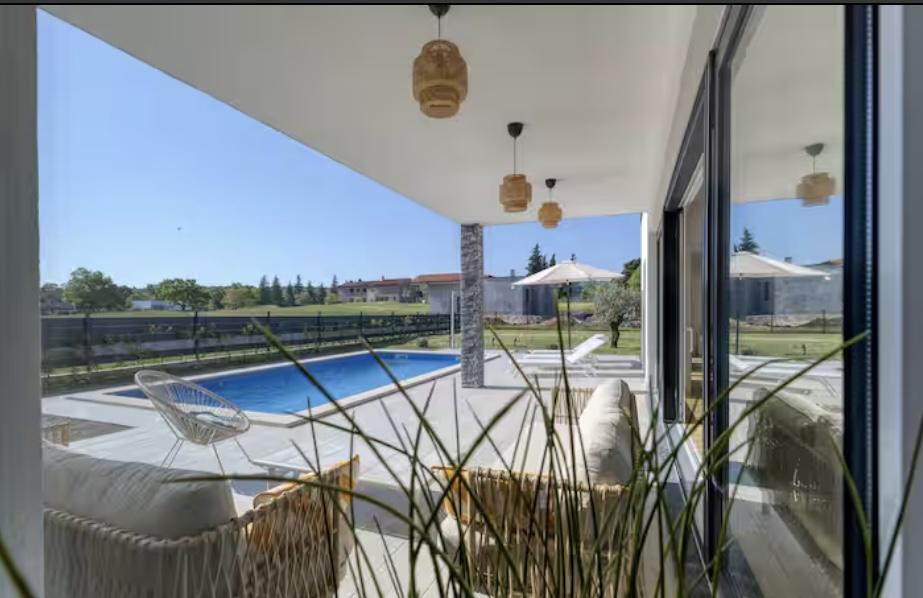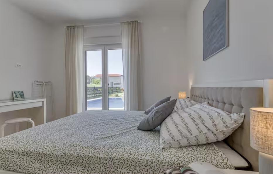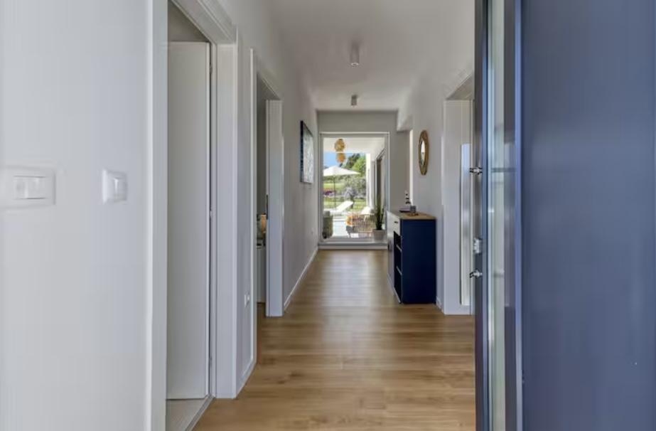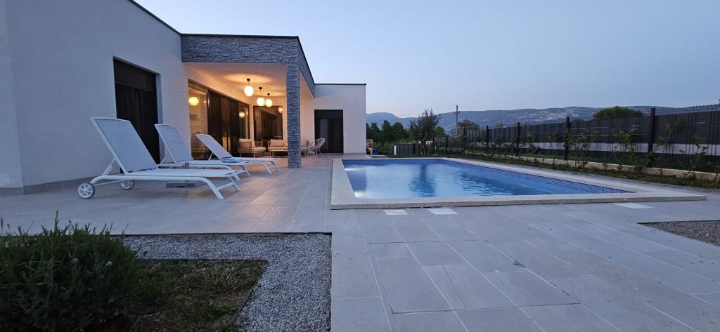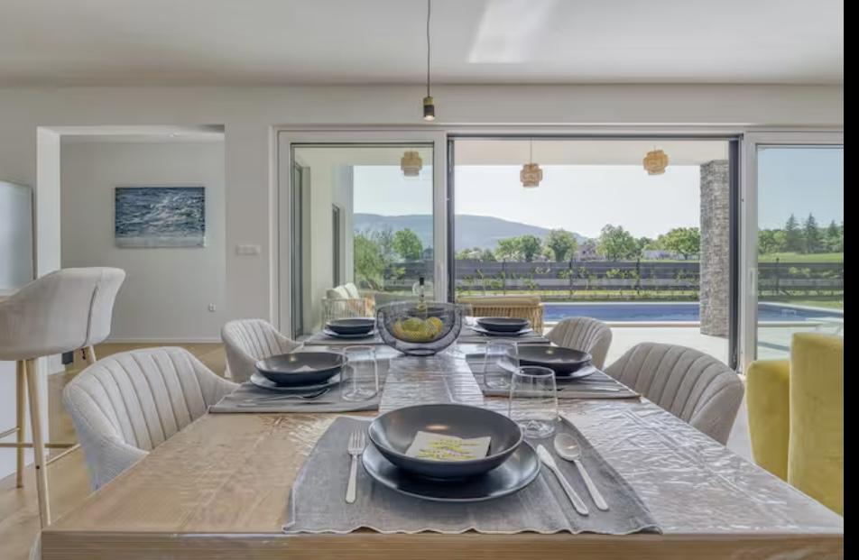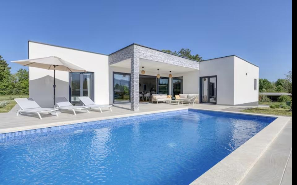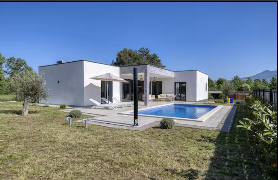 Villa Marina ligt in het rustige dorpje Blaškovići, direct naast het pittoreske stadje Kršan. Dit moderne, nieuw gebouwde gelijkvloerse huis is de ideale plek om te ontsnappen aan de drukte van de stad en te ontspannen in een natuurlijke omgeving. In het huis vinden we drie ruime slaapkamers, elk met een eigen badkamer. Twee slaapkamers hebben directe toegang tot het zwembadterras. De ruime woonkamer met eetgedeelte en keuken is omgeven door een glazen wand, waardoor er veel daglicht binnenkomt. De keuken is voorzien van alle benodigde apparatuur en keukengerei en is de ideale plek om heerlijke maaltijden te bereiden. De woonkamer leidt naar een gedeeltelijk overdekt en onoverdekt terras bij het zwembad, en de keuken leidt naar een ander terras, zodat u de ruimte in de zon of in de schaduw kunt gebruiken, afhankelijk van het tijdstip van de dag en het jaar. De terrassen zijn voorzien van comfortabel meubilair, ligstoelen en een barbecue; ideaal om te ontspannen in de frisse lucht en maaltijden te bereiden. Villa Marina heeft een uitstekende ligging, dichtbij de steden Pazin en Labin en de kust van Rabac.