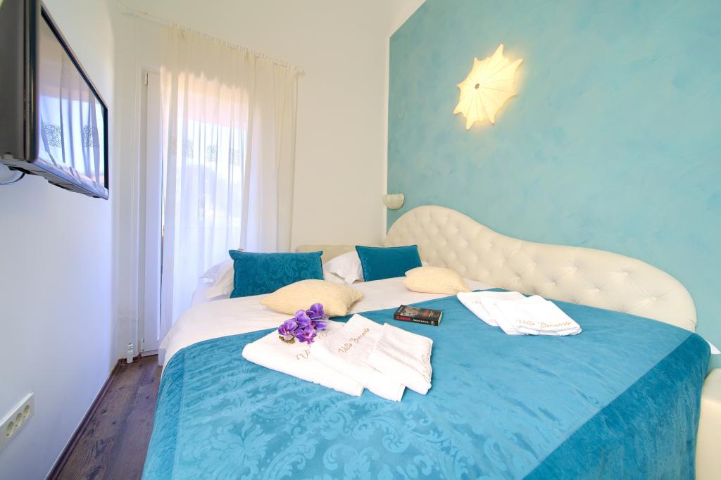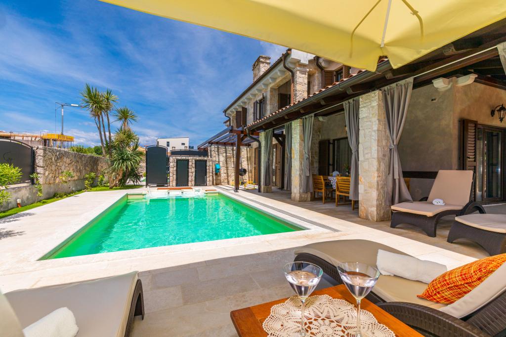 De luxe villa Bernarda ligt in Porat, vlakbij Malinska. De villa is geschikt voor 6 tot 7 personen en beschikt over drie slaapkamers en twee badkamers, verdeeld over twee verdiepingen. Op de begane grond bevindt zich de woonkamer met een slaapbank voor één persoon, een keuken met eethoek, een pantry en een toilet. Op de eerste verdieping bevinden zich drie tweepersoonsslaapkamers, twee badkamers met douche en een extra toilet. In de ruime buitenruimte vindt u een verwarmd privézwembad, een overdekt terras, een barbecueplek, een buitendouche en volop ruimte om te genieten! Er is parkeergelegenheid aanwezig.