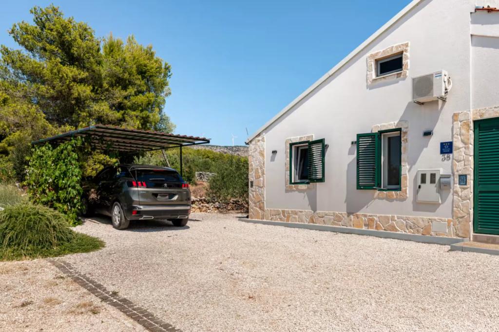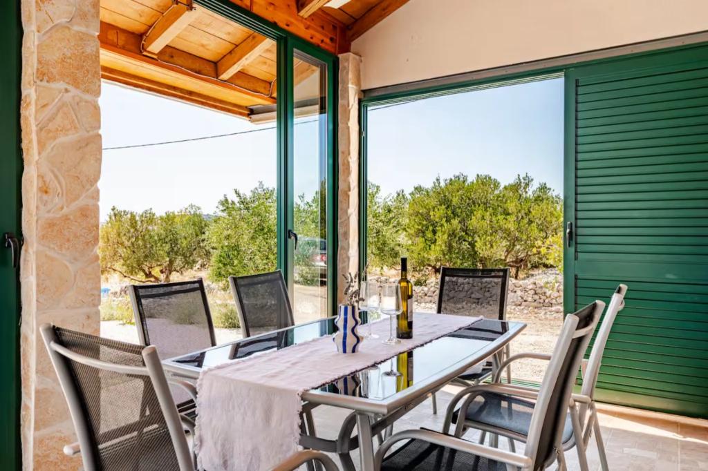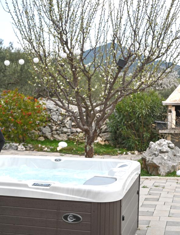 Een slaapkamer op de begane grond heeft een eigen badkamer en aparte ingang, wat extra privacy biedt. Buitenruimte: Geniet van een privézwembad dat verwarmd of gekoeld kan worden – perfect voor gebruik van de lente tot de herfst. Na een dagje strand kunt u ontspannen in de jacuzzi onder de sterrenhemel. Er is een overdekte eethoek buiten om buiten te dineren, evenals diverse zonnige en schaduwrijke hoekjes omgeven door olijfbomen – ideaal voor een glas wijn en complete rust. Locatie: Het huis is gelegen in het rustige dorp Najevi, op slechts 3 km van de jachthaven en de zee. Stranden, restaurants en winkels bevinden zich in de buurt, terwijl u tegelijkertijd geniet van volledige privacy en stilte. ***Prijs: € 170 – € 310 per nacht (afhankelijk van de periode)*** Voor vragen en reserveringen kunt u contact met ons opnemen via be