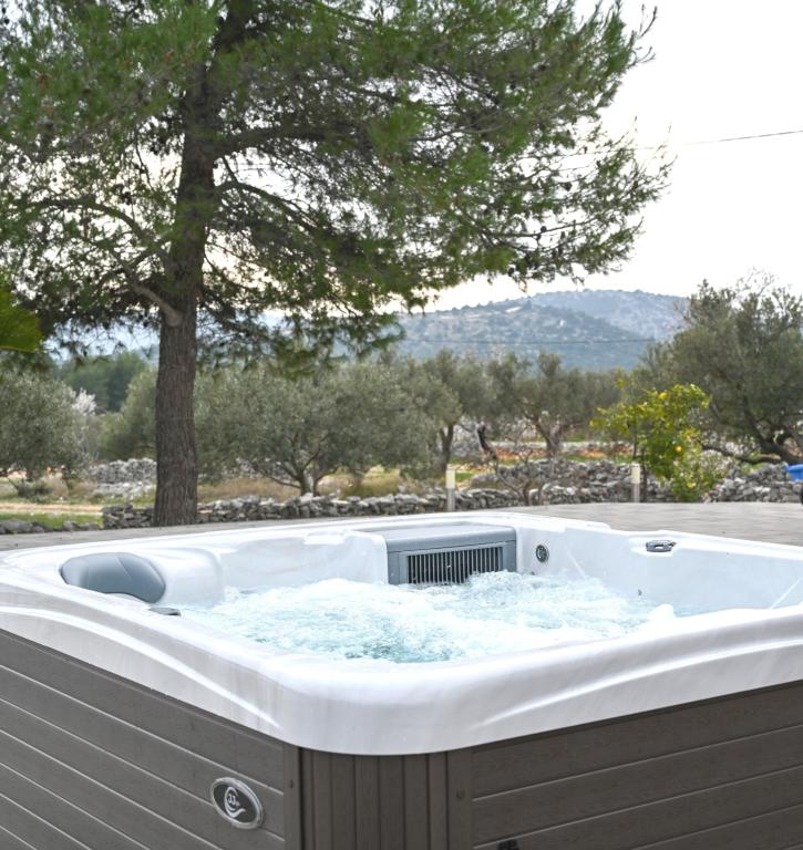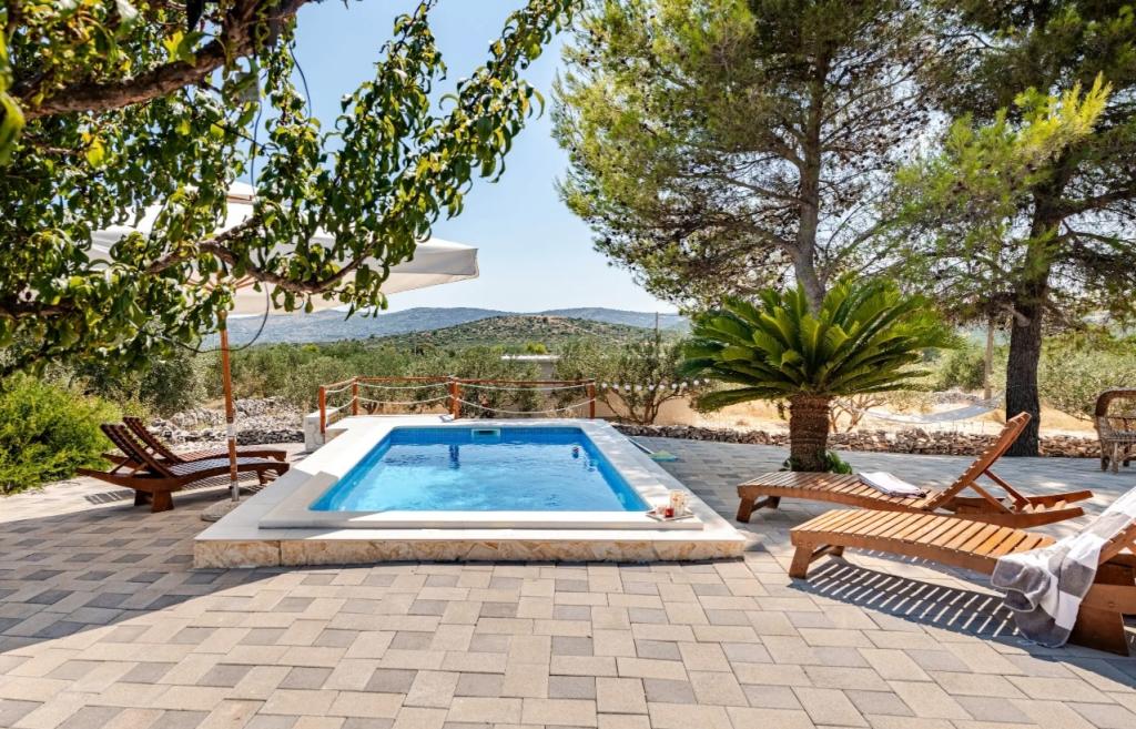 **Privéhuis met VERWARMD ZWEMBAD & JACUZZI – SLECHTS 3 KM VAN DE ZEE (Jachthaven, Trogir)** **Op zoek naar rust, privacy en een echte vakantie zonder de drukte?** Ons vakantiehuis in het dorp Najevi biedt precies dat – omgeven door olijfbomen en natuur, maar toch op slechts een paar minuten rijden van de zee, restaurants en cafés. **WAAROM VOOR DIT HUIS KIEZEN:** **PRIVÉZWEMBAD (verwarming en koeling)** **JACUZZI / HOT TUB (36–38 °C)** **SLECHTS 3 KM VAN DE ZEE EN DE JACHTHAVEN** **VOLLEDIGE PRIVÉ – geen directe buren** **RIJPELIJKE LOCATIE, ideaal om te ontspannen** **PERFECT VOOR 2-6 PERSONEN** **Accommodatie:** Het huis heeft drie comfortabele slaapkamers, een volledig uitgeruste keuken en een gezellige woonkamer om te ontspannen. Twee slaapkamers bevinden zich op de begane grond, terwijl de derde zich op zolder bevindt en bereikbaar is via een opklapbare zoldertrap. Deze ruimte biedt een bijzondere en intieme plek, ideaal voor oudere kinderen of volwassenen (niet aanbevolen voor kleine kinderen of ouderen vanwege de toegankelijkheid).