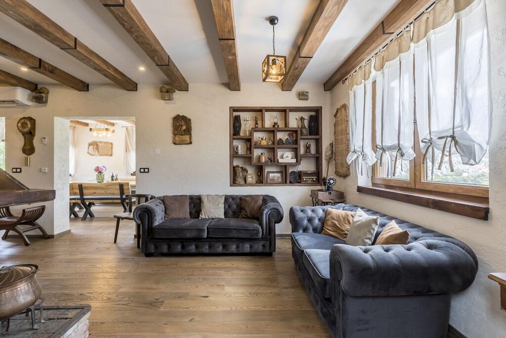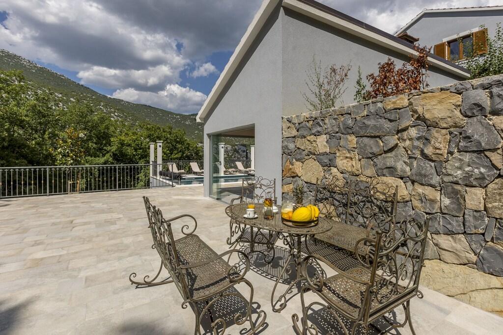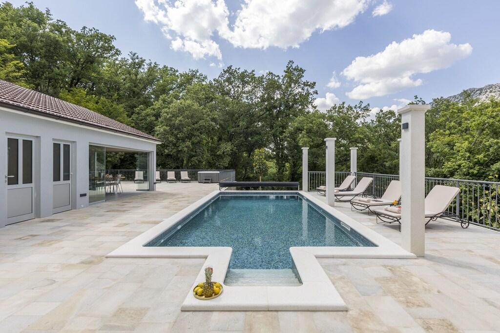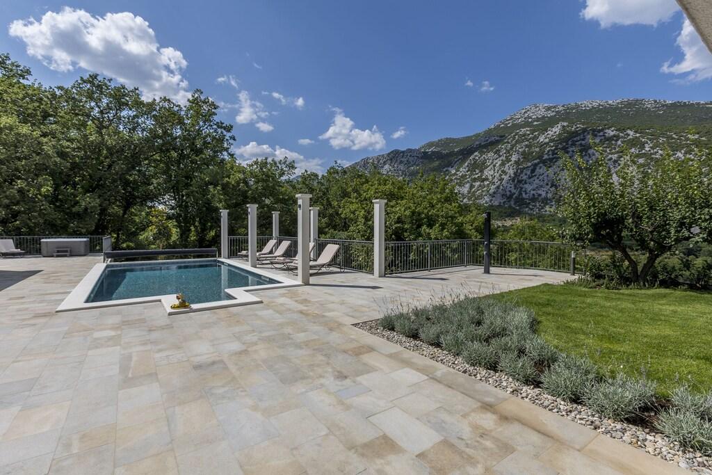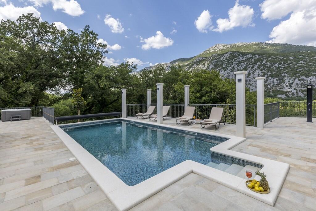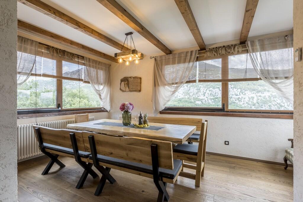 Complete en onlangs gerenoveerde villa met zwembad, sauna, zomerkeuken en huis met 4 slaapkamers. Elke kamer heeft een eigen badkamer, woonkamer, eetkamer en keuken. Het huis is gelegen in een klein dorpje Zvečanje, 10 minuten van de snelweg Blato na Cetini. Omis is weg, 15 minuten met de auto, Split 35 minuten, Makarska 25 minuten.