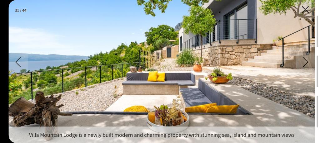 Villa Mountain Lodge is een onlangs gerenoveerde, moderne villa met 4 slaapkamers en een panoramisch uitzicht op de zee, de eilanden en de bergen. In de 900 m² grote tuin kunt u genieten van mediterrane planten en een verwarmd zwembad van 7,5 x 3 meter, dat zich in een kinderspeeltuin bevindt. Er is ook een zithoek waar u 's ochtends in de schaduw van een boom van uw eerste kopje koffie kunt genieten. Naast de keuken vindt u een barbecue en een stenen tafel waar u in alle rust kunt samenkomen. De villa ligt op slechts 8 km van het charmante stadje Omiš, 40 minuten van Makarska en Split, 2,3 km van het prachtige strand van Artina, 950 meter van een restaurant en 10 minuten van een winkel. Een auto is aanbevolen voor deze locatie.
