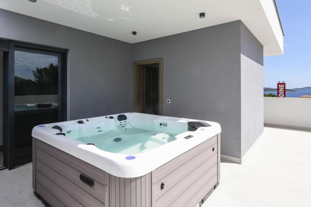 Deze woning biedt een extra niveau van luxe zoals: B. in de vorm van meer ruimte en comfort, interieur of stijl, architectuur, uitrusting of beleving. Dit elegante vakantiehuis met privézwembad ligt op een uitstekende locatie. Het ligt vlakbij het prachtige Trstenica-strand met fijn zand en kiezelstenen. Op de begane grond bevinden zich een grote keuken en woonkamer, een slaapkamer met eigen badkamer en een extra badkamer, een wasruimte en een dubbele garage. Een interne trap leidt naar de 1e verdieping, waar zich nog drie slaapkamers met badkamers en een studeerkamer (kantoor) bevinden. Elke slaapkamer leidt naar een mooi balkon met een prachtig uitzicht op de zee. Buiten kunt u heerlijk afkoelen in het zwembad, ontspannen in uw eigen jacuzzi en sauna terwijl de kinderen zich vermaken in de speeltuin. In de kelder bevindt zich een fitnessruimte en een recreatieruimte. Orebić is een kleine plaats, maar groot genoeg om je alles te bieden wat je nodig hebt op vakantie, van restaurants tot winkels. U kunt ook dagtochten maken naar Dubrovnik en het eiland Korčula.