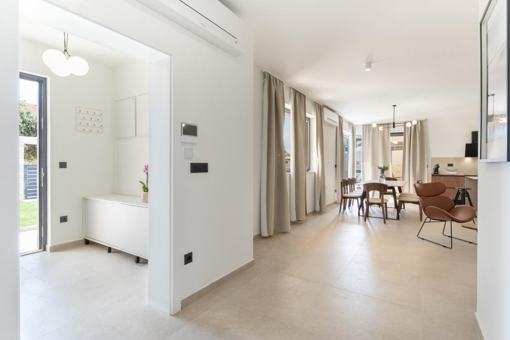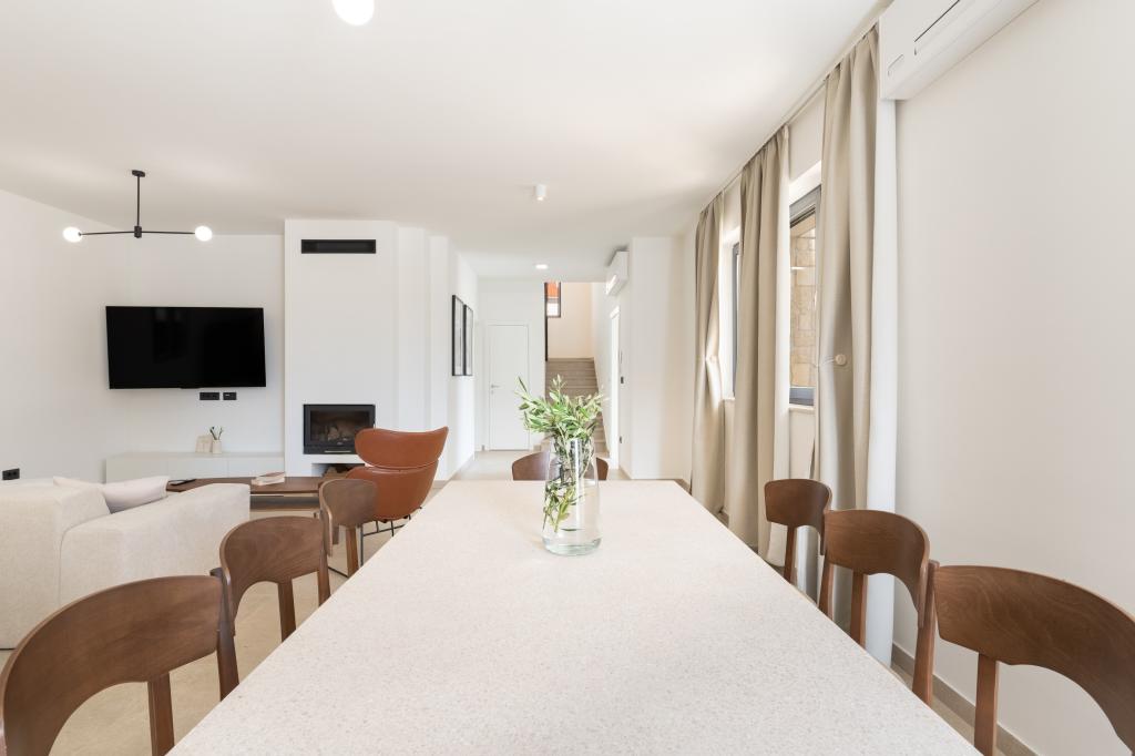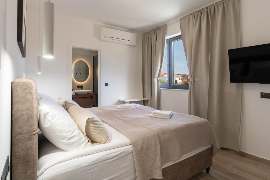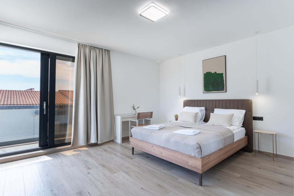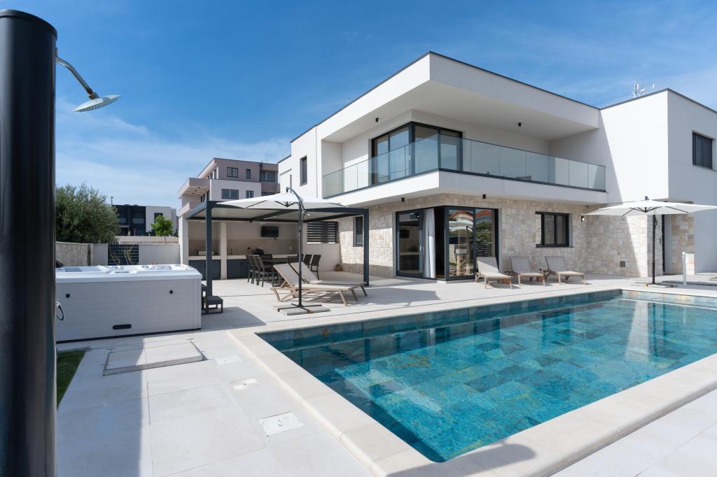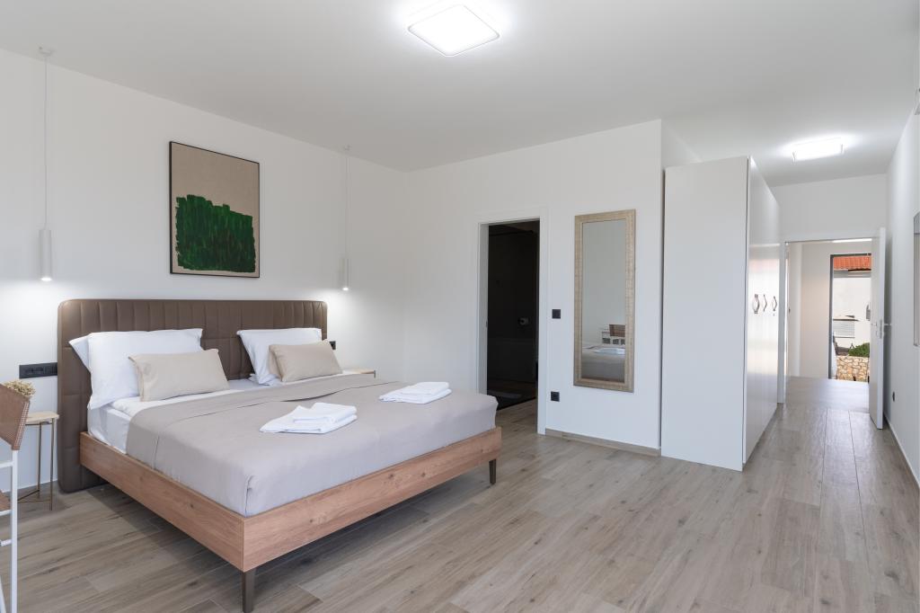 De bijzondere kenmerken van deze villa zijn het verwarmde privézwembad, de jacuzzi en het ruime zomerterras. Prestige Villa COMPADRE ligt in het rustige kustdorpje Mandre op het eiland Pag en beschikt over 4 modern ingerichte slaapkamers en 4 badkamers met een douche. De volledig uitgeruste keuken beschikt over een kookplaat, koelkast, vaatwasser, oven en alle benodigde keukenbenodigdheden. Gasten kunnen genieten van de buitengrill, ontspannen in de comfortabele zithoek of relaxen bij het zwembad en de jacuzzi. De villa is voorzien van airconditioning, een flatscreen-tv, een wasmachine, een eigen ingang, een minibar en uitzicht op de tuin. Deze villa is ideaal voor gezinnen of groepen en combineert luxe en comfort in een elegante leefruimte van 230 m².