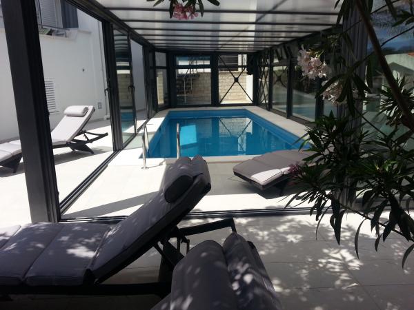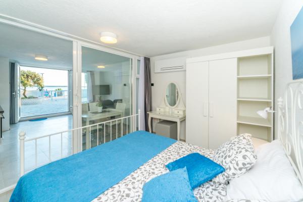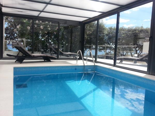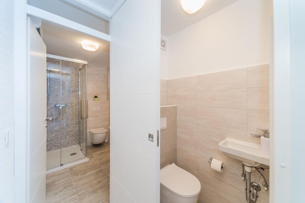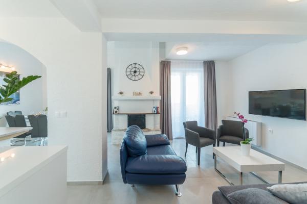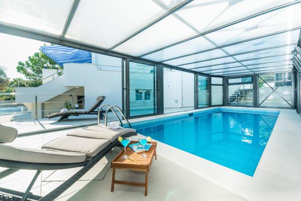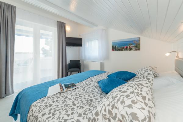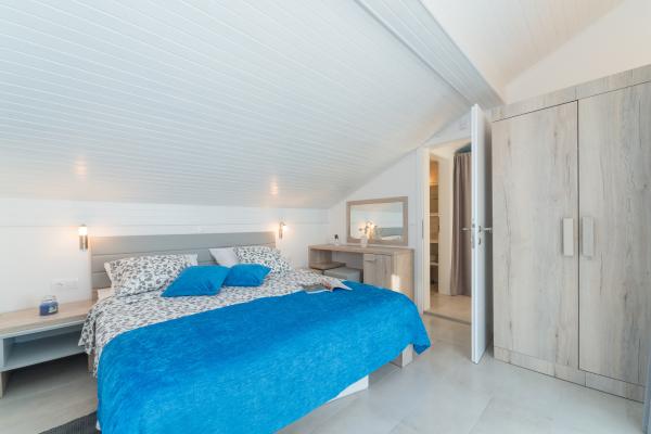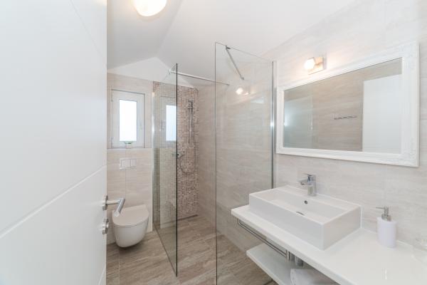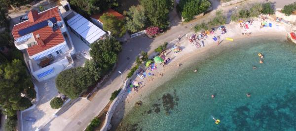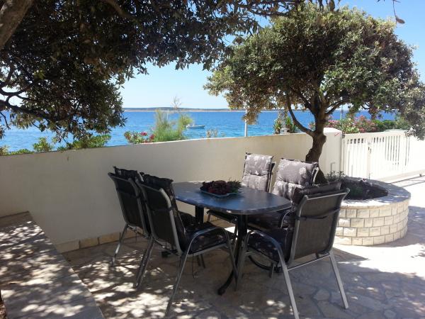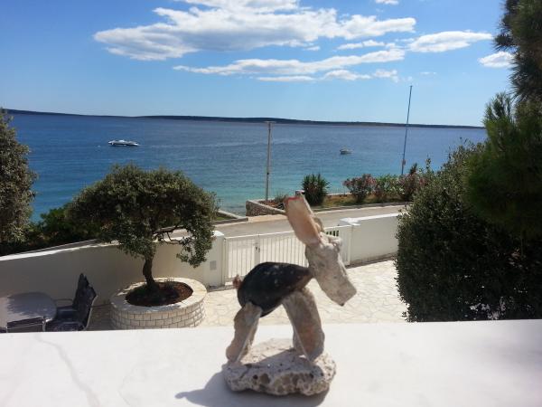 Aangename en volledig modern ingerichte villa met zwembad in Mandre, eiland Pag, 70 km van Zadar. Het ligt op 120 meter afstand van het stadscentrum. Voor de villa ligt een prachtig lang strand van kleine kiezels, waarlangs zich een promenade uitstrekt. De villa is ideaal voor een ontspannen vakantie met familie en vrienden. Vanaf alle terrassen van de villa is er een onweerstaanbaar uitzicht op de kristalheldere zee en de eilanden. Op het erf bevindt zich een verwarmd binnenzwembad met tegenstroomzwemmen en massage, een buitendouche en ligweide met uitzicht op zee, en een plek om uit te rusten in de schaduw van de pijnbomen. De villa heeft drie verdiepingen (begane grond, eerste verdieping en zolder) en biedt plaats aan 12 personen. Op elke verdieping bevindt zich één woonunit met eigen ingang, SAT/TV, koeling. Elke unit heeft een keuken, eetkamer, woonkamer en een terras met uitzicht op de zee. De unit op de begane grond beschikt over twee slaapkamers (4 personen), een badkamer en een toilet. Boven zijn er twee slaapkamers, een badkamer, een toilet en nog een slaapkamer met eigen badkamer (6 personen). Op de zolder bevindt zich één slaapkamer (2 personen) en een badkamer