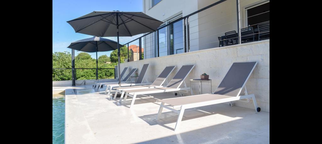 Villa te huur met zwembad – Pakoštane/Vrana (tot 10 personen)** Een luxe villa met drie verdiepingen, 5 slaapkamers en 3 badkamers is te huur, ideaal voor gezinnen of groepen. De villa is gelegen in een rustig deel van Pakoštane, vlakbij het Vrana-meer en op slechts 5 minuten rijden van het strand. De villa beschikt over een privézwembad met hydromassage, een dakterras met uitzicht op zee en het meer, een buitenbarbecue, een volledig uitgeruste keuken, wifi, smart-tv, airconditioning en een wasmachine. Gratis parkeren en een basketbalring zijn ook beschikbaar. Het bijzondere aan de villa is de ligging - dicht bij stranden, restaurants en voorzieningen, maar toch afgelegen genoeg om rust en privacy te garanderen. **Capaciteit:** 10 personen **Prijs:** In overleg, afhankelijk van de datum en het aantal personen. We kijken uit naar uw komst!