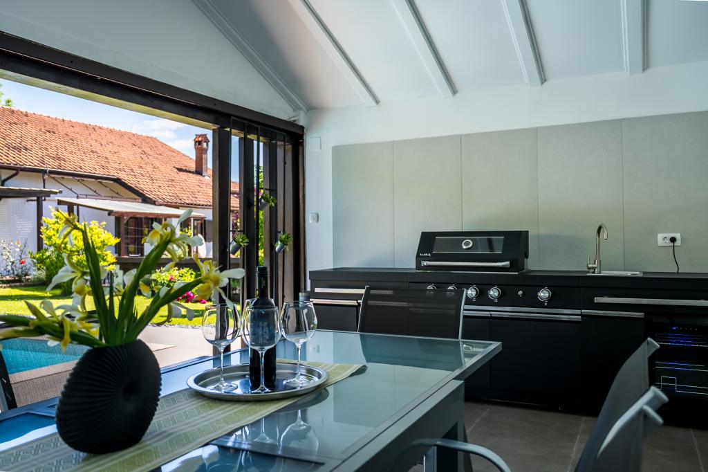 Volledig uitgeruste villa in het binnenland van Istrië, voor een rustige en aangename vakantie. Op ca. 30 km afstand van prachtige stranden. De villa beschikt over een verwarmd zwembad van 10 x 5 meter, een grote tuin met een barbecue, speeltoestellen en 3 parkeerplaatsen. Het interieur is modern ingericht met alle nodige voorzieningen. U kunt genieten van een actieve vakantie op de goed onderhouden fietspaden in de omgeving, de charmes van de zee ontdekken of diverse restaurants en plattelandstoerisme met traditionele gerechten bezoeken.