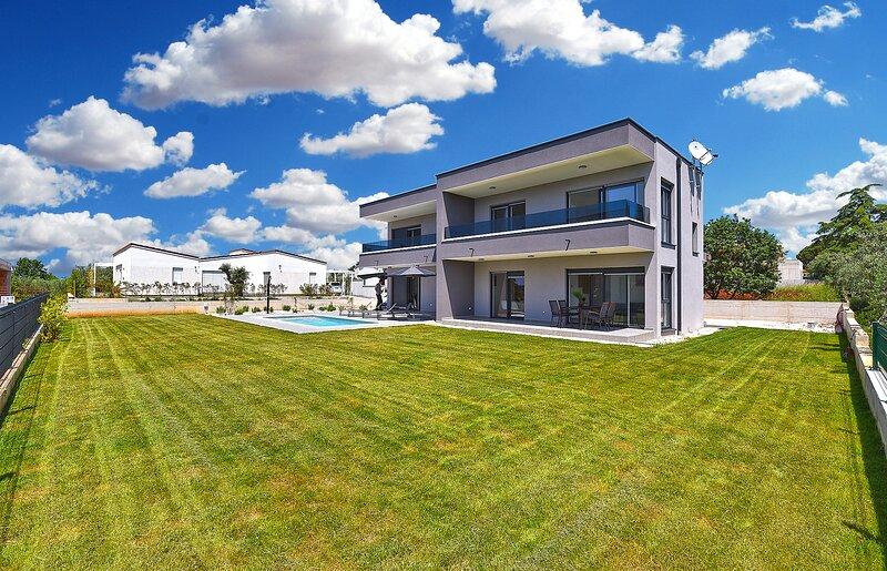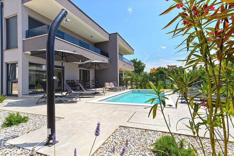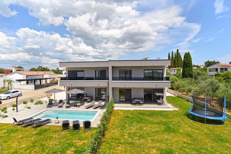Villa Lippa met uitzicht op zee verwelkomt u in het rustige dorpje Peroj, vlakbij Pula en het Brijuni Nationaal Park. Deze modern ontworpen villa is perfect voor een ontspannen familievakantie. De buitenruimte is ideaal om uzelf te verfrissen op het overdekte terras en te genieten van het verwarmde zwembad in de zomer en het voorseizoen. De villa biedt comfortabele accommodatie voor maximaal 12 personen in 4 slaapkamers. Villa Lippa Peroj verwelkomt u met een schotel met Istrische vleesdelicatessen en vers gegrilde vis - zie de categorie met extra foto's. Villa Lippa in Peroj, vlakbij Pula en het betoverende Brijuni Nationaal Park, is een moderne en prachtig ontworpen villa die de perfecte setting biedt voor een ontspannen familievakantie met een prachtig uitzicht op de Adriatische Zee. Comfort en stijl voor het hele gezin Villa Lippa is ontworpen om maximaal comfort en ontspanning te bieden aan maximaal 12 gasten. Met een eigentijds design en zorgvuldig geselecteerde voorzieningen is het ideaal voor gezinnen of groepen vrienden die willen genieten van een rustige omgeving.