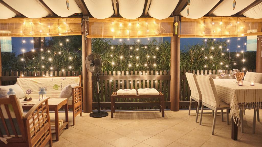 U beschikt over een parkeerplaats in de tuin, een verborgen zijterras met barbecue en een berging met strandstoelen en overige benodigdheden en een tuin achter het huis. Vóór het terras bevindt zich een zonnetuindouche. In de zomermaanden (van half juni tot half/eind augustus) kunnen maximaal 6 personen in het huis verblijven (verdeeld over 3 slaapkamers). Buiten het hoogseizoen is het aantal gasten beperkt tot 4 personen en slechts 2 slaapkamers. In de prijs zijn alle toeristenkosten, WiFi internet (onbeperkt toegang), parkeren, elektriciteit en andere nutsvoorzieningen inbegrepen. Ook beddengoed en handdoeken zijn aanwezig.