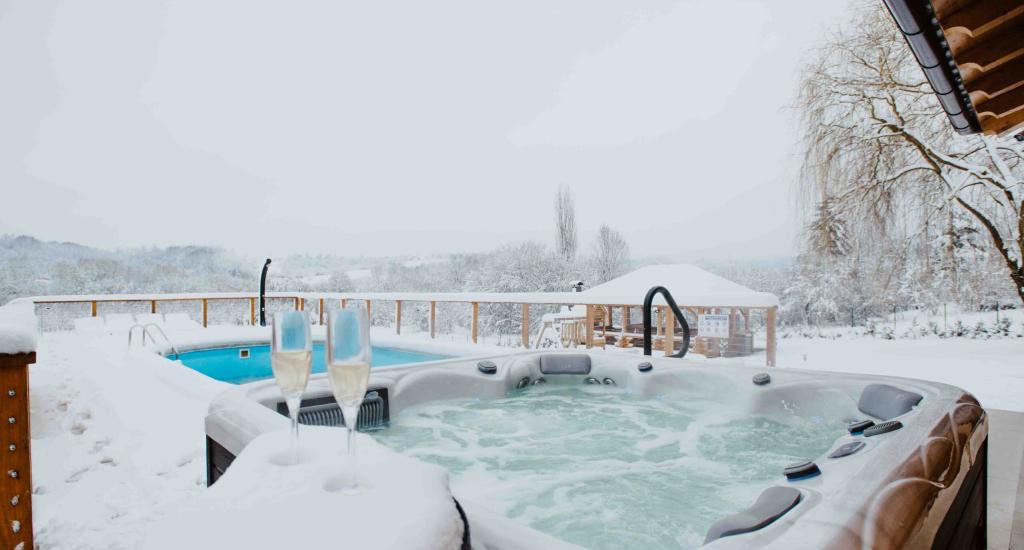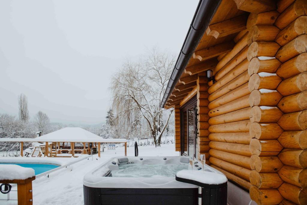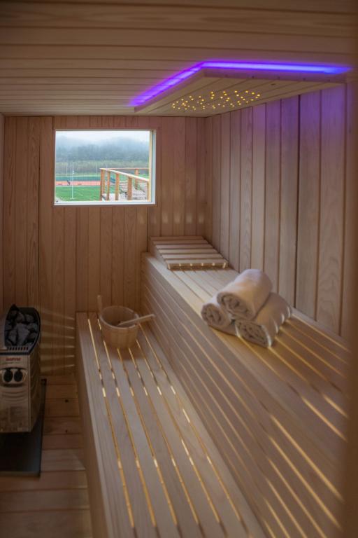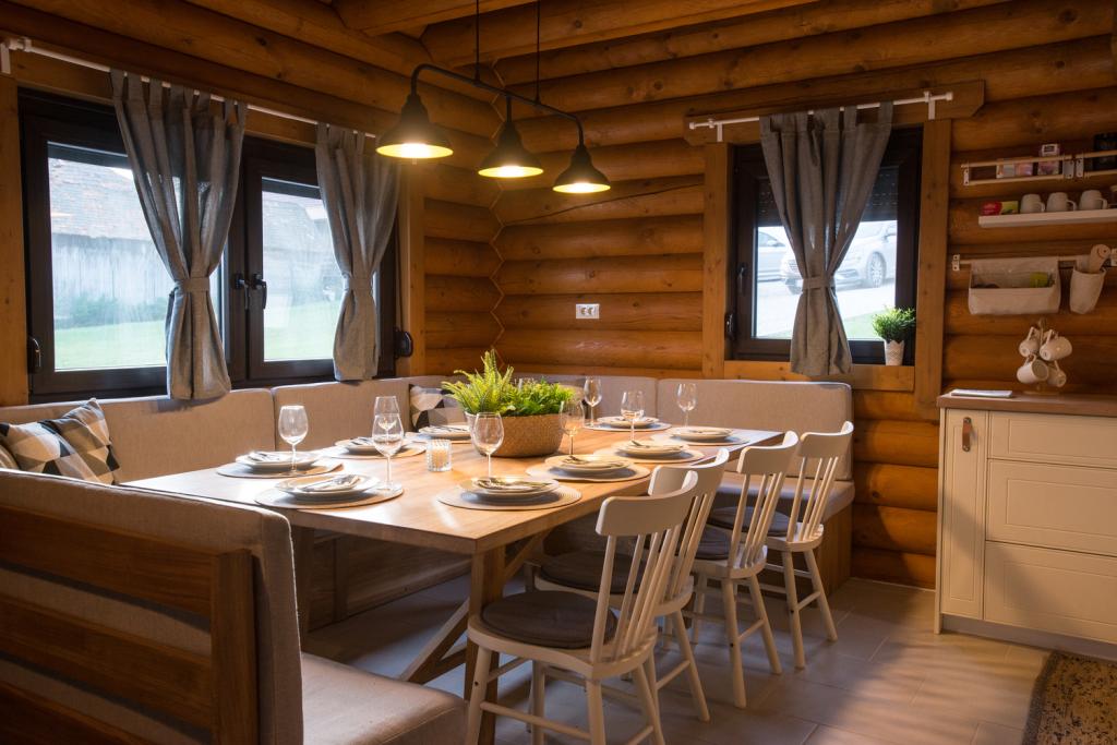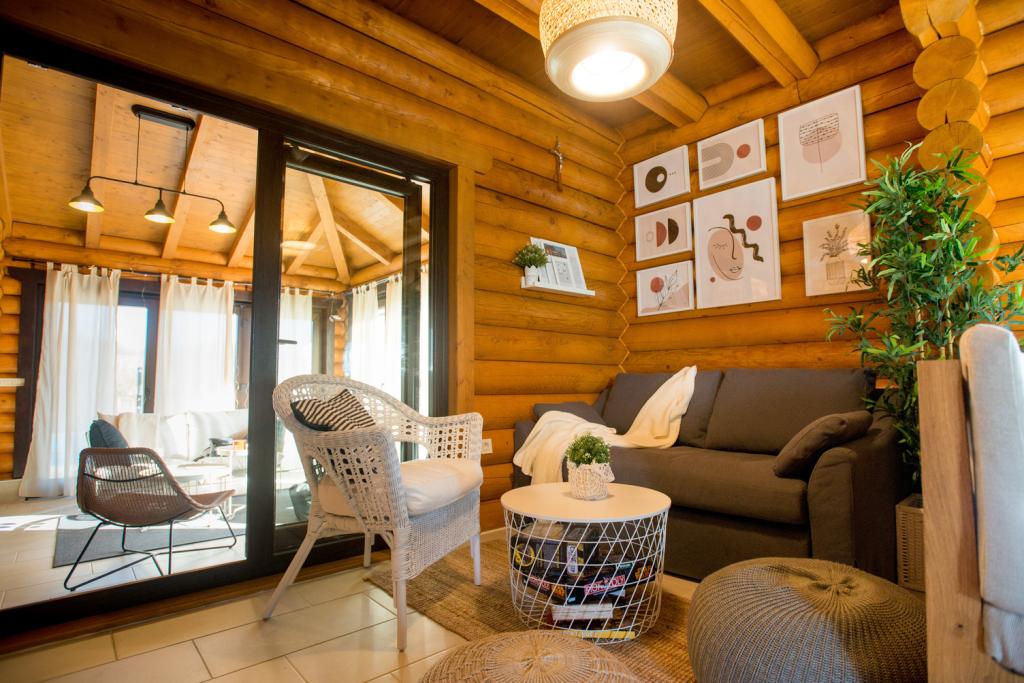 Houten huisje gemaakt van Siberisch grenen. Huis: maximaal aantal bedden 10, huis 108 m2, terras met zwembad 105 m2, sauna, jacuzzi, tuinhuisje 30 m2. tuin ruim 7.000 m2, parkeerplaats, woonkamer met keuken, 3 slaapkamers, badkamer met douche en toilet. Afgesloten terras met open haard, tennisbaan voor gezelligheid en sport, kleedkamer met douche en toilet, tuinhuisje met barbecue, hengel en benodigde uitrusting. Speeltuin, 4 tv's, darts.