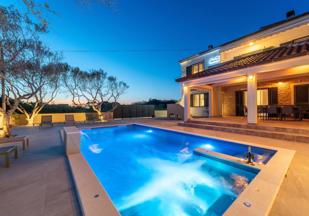 Hartelijk welkom bij Villa Danica. Luxe villa in Privlaka, vlak bij Zadar. Een wellness-oase met accommodatie met airconditioning, een eigen verwarmd zoutwaterzwembad, prachtig uitzicht op zee en een ruim balkon. Geniet van het comfort met toegang tot een terras, tafeltennis, biljart, fitnessruimte, gratis privéparkeergelegenheid en snelle WiFi. De villa beschikt tevens over een sauna. Wij kijken ernaar uit om gasten van alle leeftijden te verwelkomen, inclusief de allerkleinsten. Huisdieren zijn ook toegestaan. De ruime villa beschikt over een volledig uitgeruste keuken met vaatwasser, oven en magnetron, een comfortabele woonkamer met voldoende zit- en eetruimte, 4 slaapkamers en 5 badkamers met douches. Voor uw comfort zijn handdoeken en beddengoed aanwezig. Geniet van de sfeer bij de open haard die bij de accommodatie aanwezig is. Gasten van de villa kunnen genieten van verschillende activiteiten in en rond Privlaka, zoals paardrijden, fietsen en wandelen. De oudste Kroatische koninklijke stad, Nin, ligt op 4 km afstand van de accommodatie.