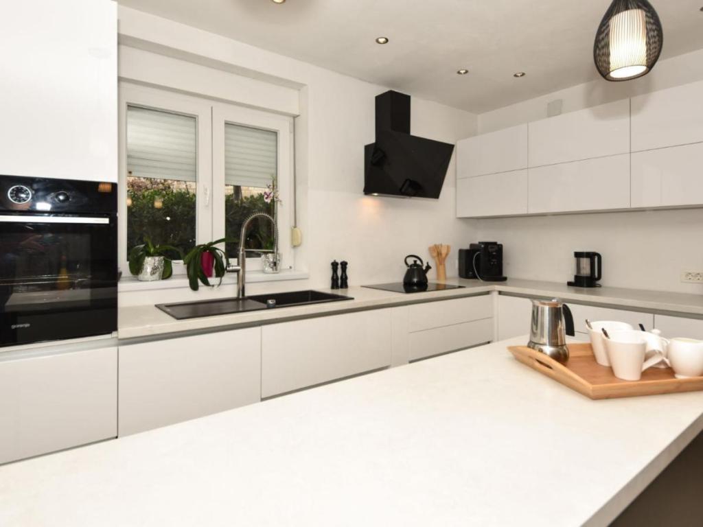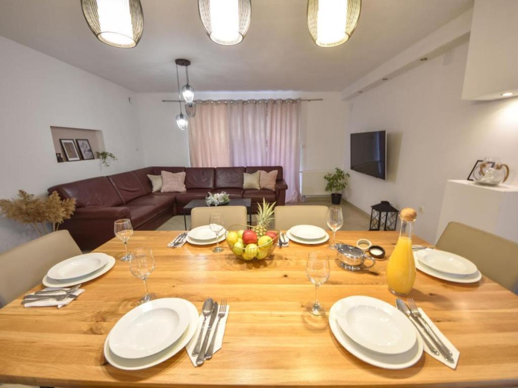 De vrijstaande villa "Villa Matino" met twee verdiepingen ligt op 400 meter van het centrum van Ražanac, op een rustige en zonnige locatie, op 440 meter van de zee en het strand. Op een omheind perceel van 500 m² hebben gasten toegang tot een privézwembad (8 x 4 m, diepte 145 cm, geopend van 15 mei tot 15 oktober), een buitendouche en een barbecue. Het zwembad wordt onderhouden door de eigenaar. De villa biedt gratis internet, een wasmachine, 4 airconditioners en parkeergelegenheid voor 3 auto's. De eigenaar accepteert geen jongere groepen. Het huis is 250 m² groot en bestaat uit 2 appartementen die samen worden verhuurd - ideaal voor groepen die privacy en gedeelde ruimte waarderen. Het kleinere appartement heeft 2 slaapkamers (180 x 200 cm), een keuken, een eetkamer, een woonkamer, een badkamer en 3 terrassen (waarvan 2 met zeezicht). Het grotere appartement heeft 3 slaapkamers (2x 180x200 cm, 1x 140x200 cm), een keuken, een eetkamer, een woonkamer, 2 badkamers, 2 terrassen en een berging.
