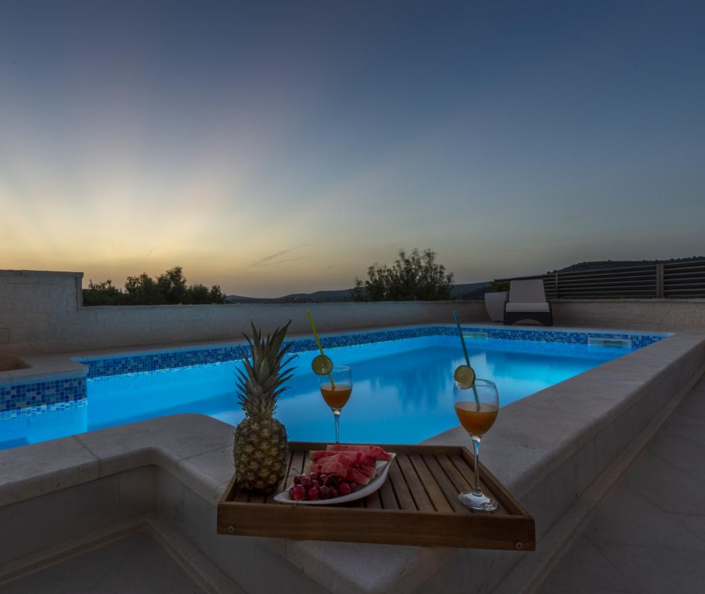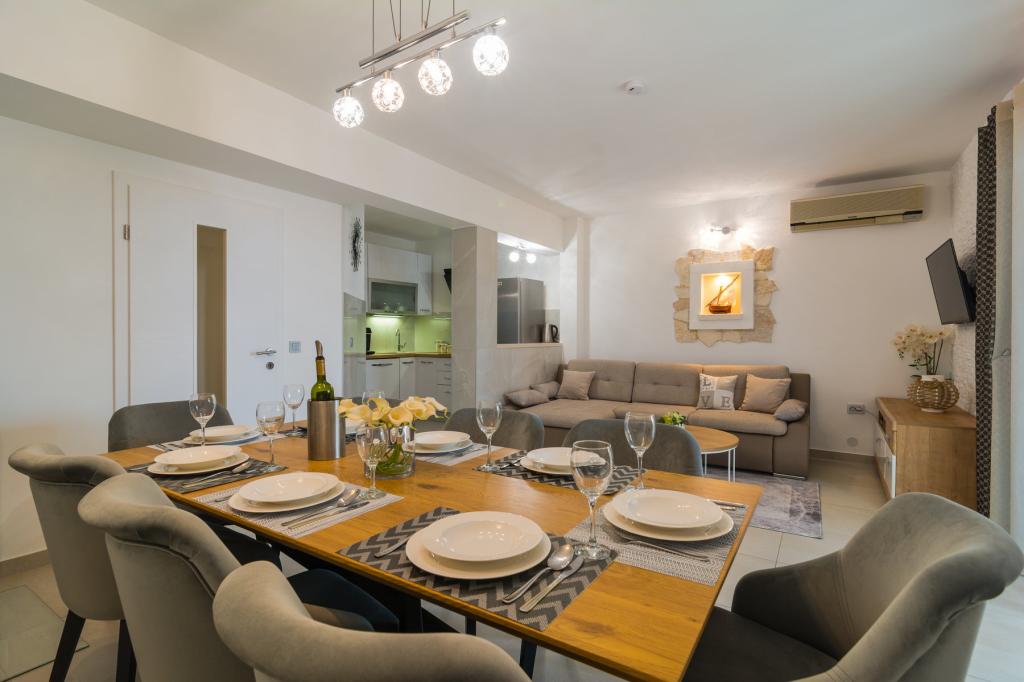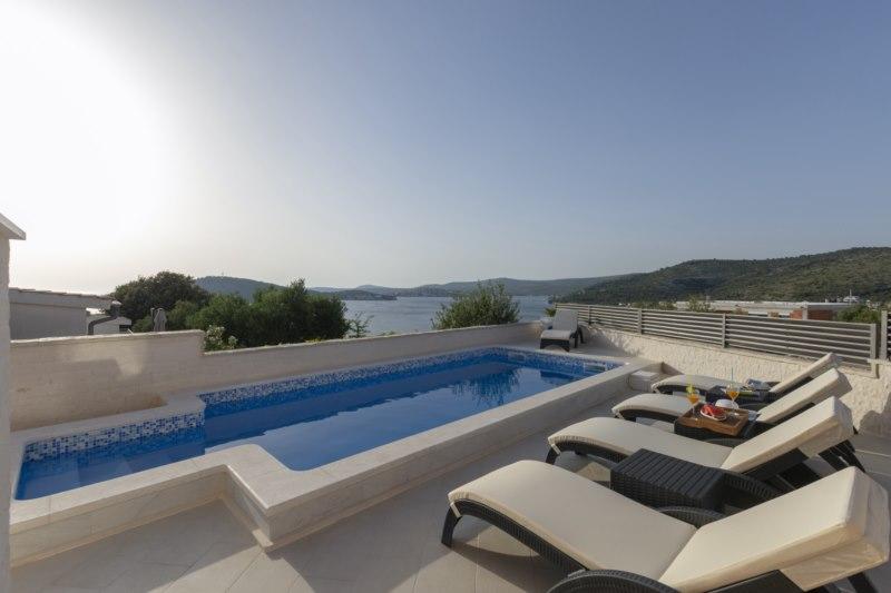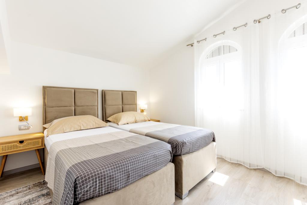 Het nieuw gebouwde vakantiehuis ligt op een rustige locatie, weg van het lawaai en de drukte, en biedt u de oase van rust voor uw vakantie met een open uitzicht op de kristalheldere zee. Het huis bestaat uit 4 slaapkamers, 2 badkamers, een keuken en een woonkamer, 2 terrassen en een balkon met uitzicht op het vertrek van de ochtend en de magische avondzonsondergang. In de tuin is er een verwarmd zwembad met massagestralen en ligstoelen, een buitendouche en een grote grill die alleen onze gasten tijdens de dienst, en heeft een eigen parkeerplaats.