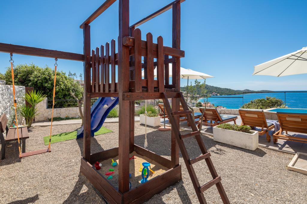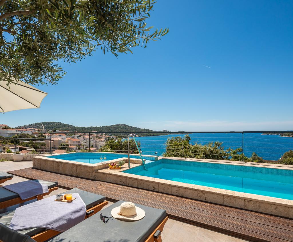 Charmante villa met prachtig uitzicht op zee in Ražanj, een klein stadje in het hart van Dalmatië. Villa Marija is een ideale keuze voor een vakantie met familie of vrienden in een rustige, mediterrane omgeving. De villa beschikt over 4 comfortabele slaapkamers, 3 moderne badkamers, een woonkamer, een eetkamer en een volledig uitgeruste keuken. Aan de voorzijde van de villa bevindt zich een ruim terras met een zwembad en ligstoelen, dat een open uitzicht op zee biedt. Het is de perfecte plek om te zonnebaden en te genieten van betoverende zonsondergangen. Het terras beschikt ook over een eethoek en een barbecue. Gasten hebben toegang tot privéparkeergelegenheid in de omheinde tuin. De locatie van de villa biedt talloze mogelijkheden om te genieten: zwemmen in de kristalheldere zee, ontspannende wandelingen, fietstochten over goed onderhouden paden, boottochten en uitstapjes naar nationale parken. In de buurt liggen ook populaire toeristische bestemmingen zoals Zadar, Šibenik, Primošten, Trogir en Split, die u zullen betoveren met hun schoonheid en rijke culturele erfgoed.