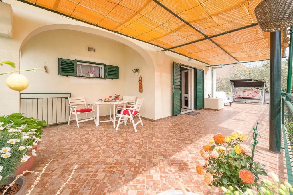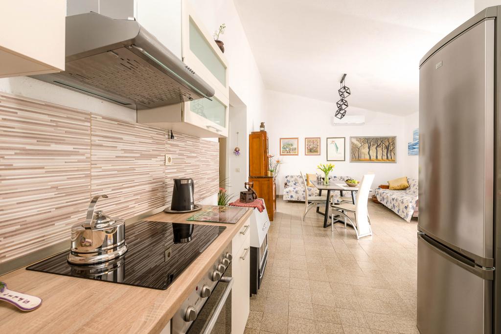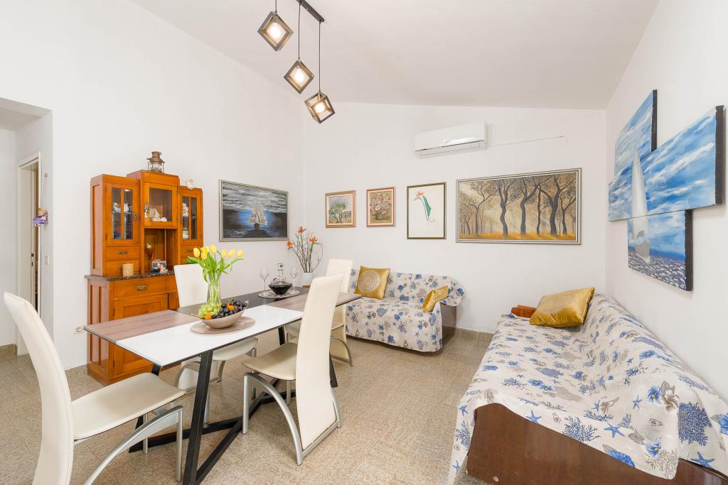 Deze villa biedt de perfecte combinatie van comfort en een natuurlijke omgeving, ideaal voor families of groepen vrienden die op zoek zijn naar een ontsnapping aan het dagelijkse leven. Het huis heeft drie ruime slaapkamers, een luchtige en elegant ingerichte woonkamer, twee volledig uitgeruste keukens en twee badkamers. Extra plezier wordt geboden door een groot terras met uitzicht op het groen, een overdekte parkeerplaats en een ruime tuin vol olijfbomen en weelderige mediterrane planten. Voor liefhebbers van culinaire avonturen staat er een grill tot uw beschikking, terwijl voor uw comfort gratis WiFi, airconditioning en satelliet-tv aanwezig zijn.