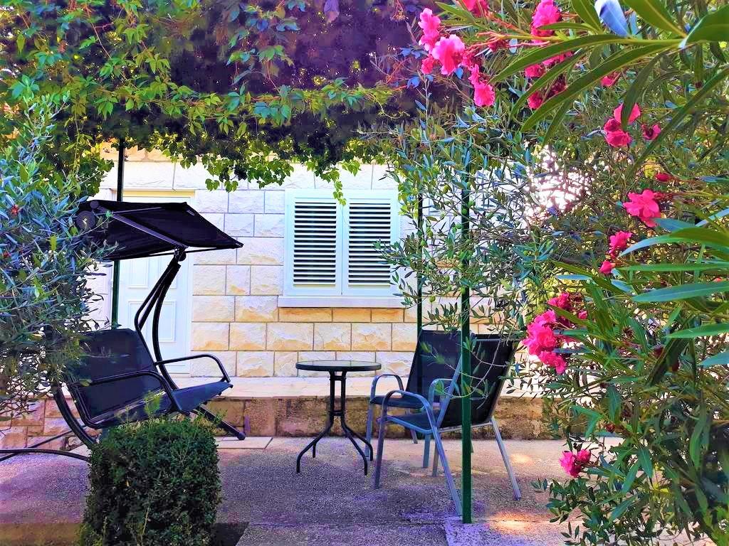 House Nikola ligt in een rustig deel van de stad naast een dennenbos langs de Sumartin-promenade. Het ligt op 40 meter van het natuurstenen strand ten zuiden van het huis en op 80 meter van het mooiste natuurlijke zandstrand (foto) in het oostelijke deel van Brac. Het huis heeft een grote tuin van 800m2 waar u kunt ontspannen op ligstoelen en genieten van de barbecue. De tuin is beschut door groen en biedt volledige intimiteit en de juiste plek voor een familievakantie. Het wordt verhuurd als een geheel huis, u bent alleen in het huis, er zijn geen andere gasten.