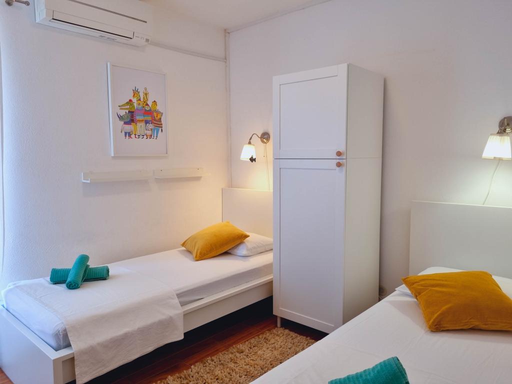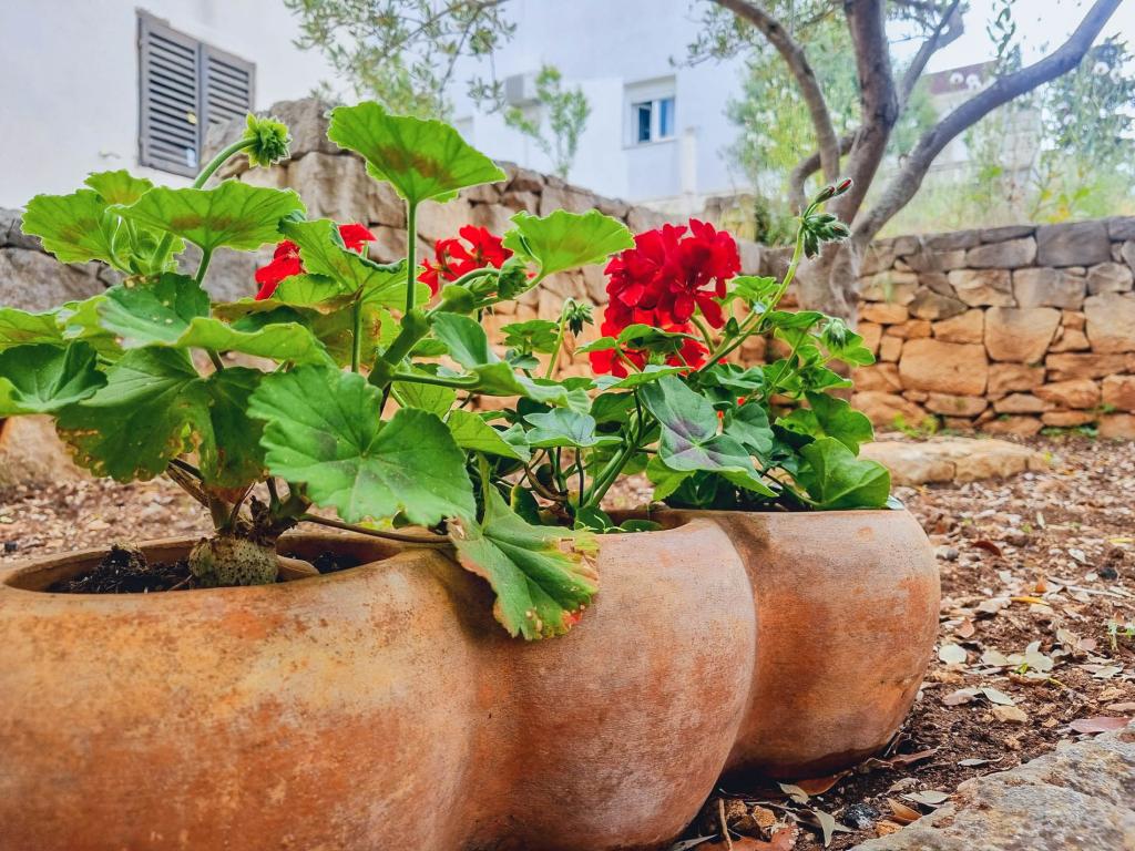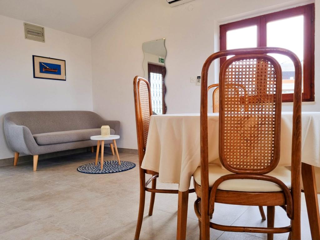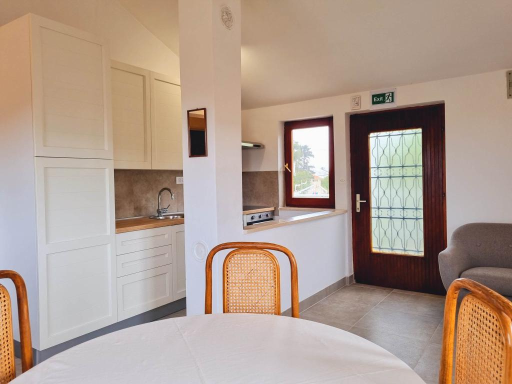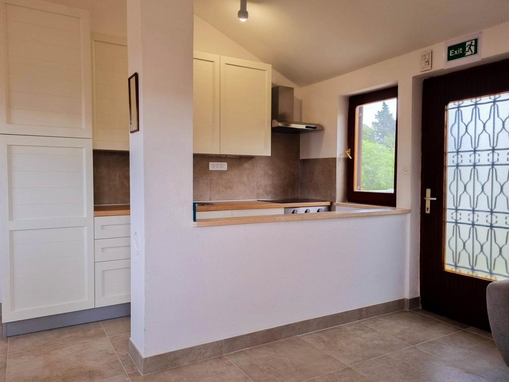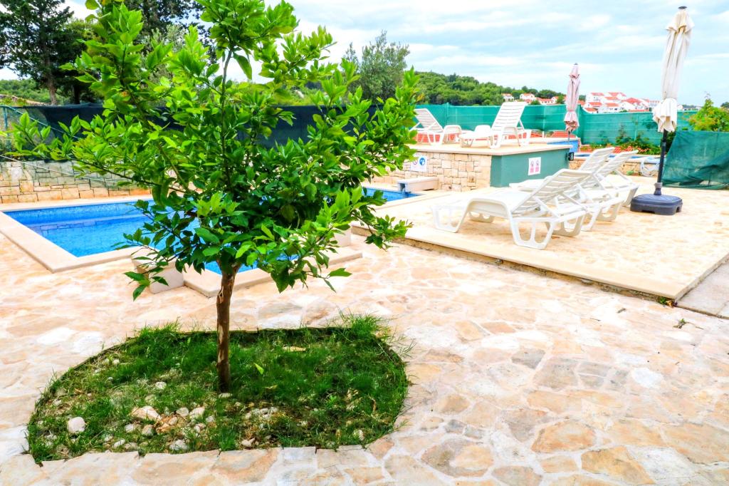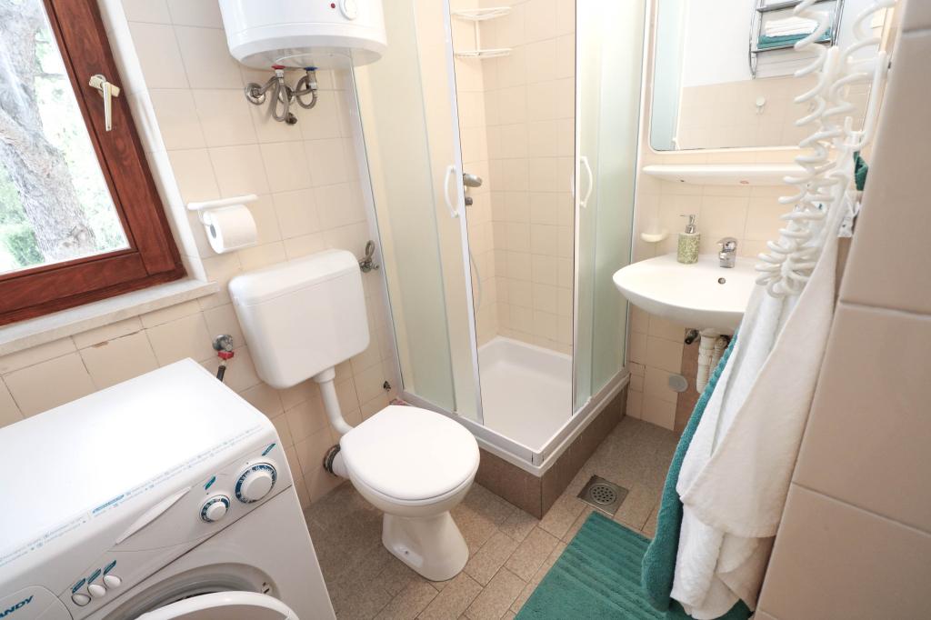 Villa Dvornik biedt volledige privacy in comfortabele accommodatie voor gezinnen met kinderen, studentengroepen en familiebijeenkomsten van meerdere generaties. Het heeft uitzicht op zee en ligt op slechts 300 meter van de zee en het strand. Woonoppervlak van 110 m2 + 25 m2 terras, grote tuin van 280 m2 bedekt met stenen platen, met 4 kamers (8 bedden) en twee zwembaden. Een groot zwembad met 4 massagejets van 24 m2 en een diepte van 1,5 m voor volwassenen en een kleiner bad bestemd voor kleine kinderen van 3,5 m2 en een diepte van 0,5 m. Beide baden worden verwarmd door middel van zonnecollectoren van 10 m2 waardoor de temperatuur van het zwembad van 21 °C in mei en oktober. De buitendouche en grill bevinden zich in de omgeving van het huis. Het huis is voorzien van airconditioning en heeft toegang tot draadloos internet. Er zijn drie parkeerplaatsen voorzien op het terrein rondom het huis. Huisdieren zijn welkom.