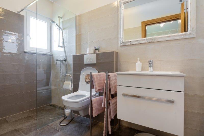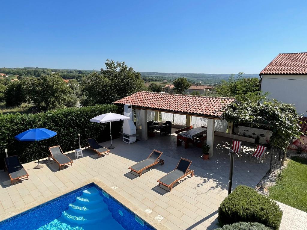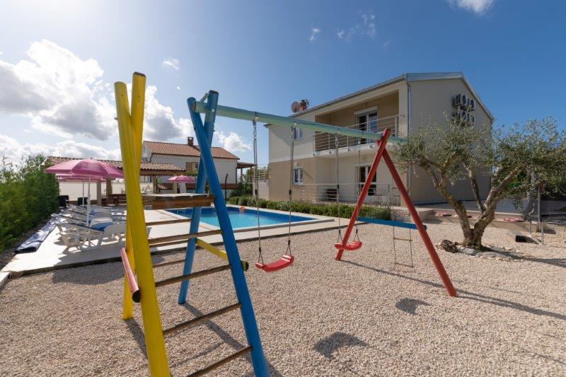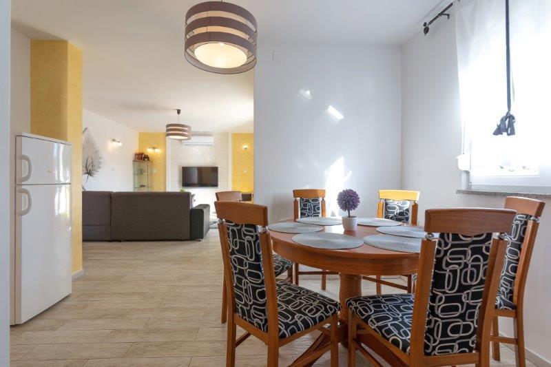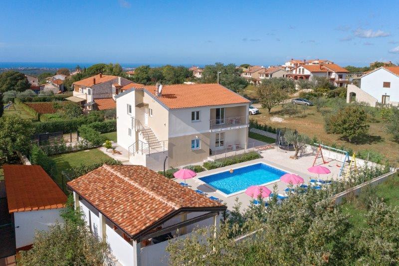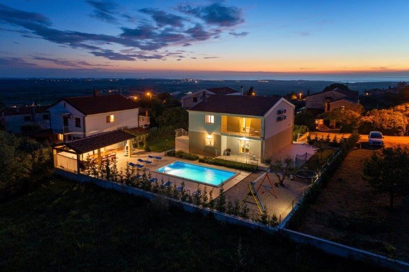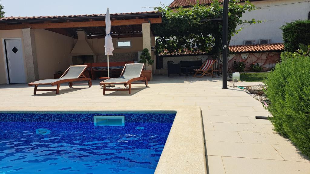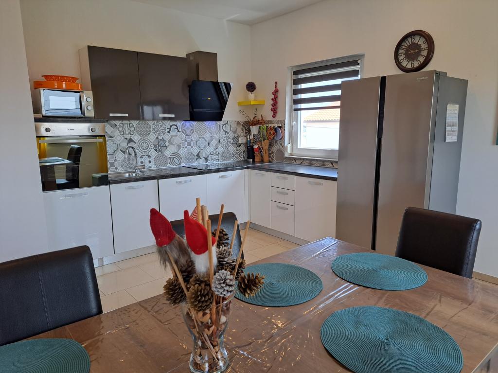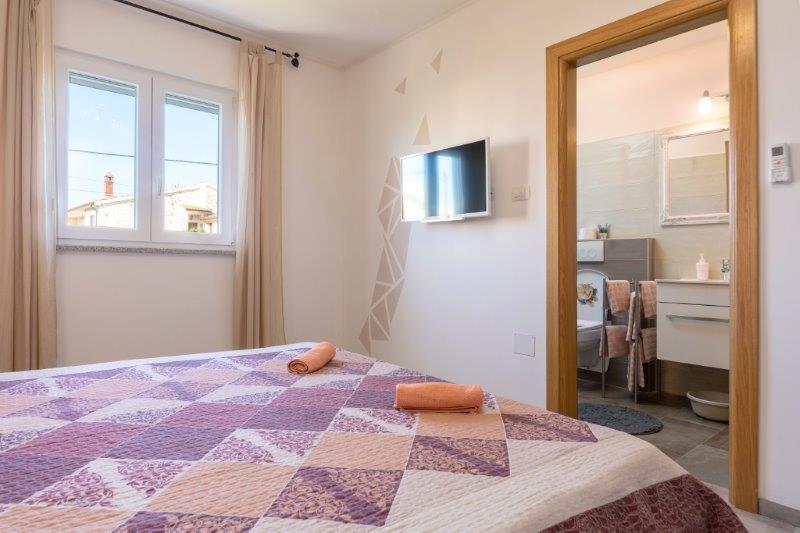 Wij zijn gevestigd in het kleine stadje Kaštelir, 10 km van Poreč. Het huis bestaat uit twee afzonderlijke appartementen, één op de begane grond, de andere op de eerste verdieping, het huis wordt als geheel verhuurd. Elk appartement bestaat uit een woonkamer, keuken, twee slaapkamers met elk een eigen badkamer. Elk appartement beschikt over 3 airconditioners, één in de woonkamer en één in elke kamer. Het appartement is voorzien van alles wat u nodig heeft voor een aangenaam verblijf. Buiten is er een kinderspeelplaats met schommels, een trampoline en een tafeltennistafel. De tuin is geheel omheind, u mag uw hond meenemen. Voor honden rekenen wij een toeslag van 12 euro per dag. Buiten beschikken we over een zwembad van 8x4m, ligstoelen, parasols en een zomerkeuken met barbecue. Voor het appartement hebben we 6 parkeerplaatsen, waarvan 2 overdekt. Vanwege andere verplichtingen bij ons is het in juli en augustus alleen mogelijk om van zondag tot zondag te boeken, en in andere maanden is het minimum 5 dagen en kan de aankomsttijd elke dag van de week zijn. Het huis is ideaal voor 8 personen, maar kan ook 10 personen herbergen. Voor een extra persoon hanteren we een tarief van € 25 per persoon.
