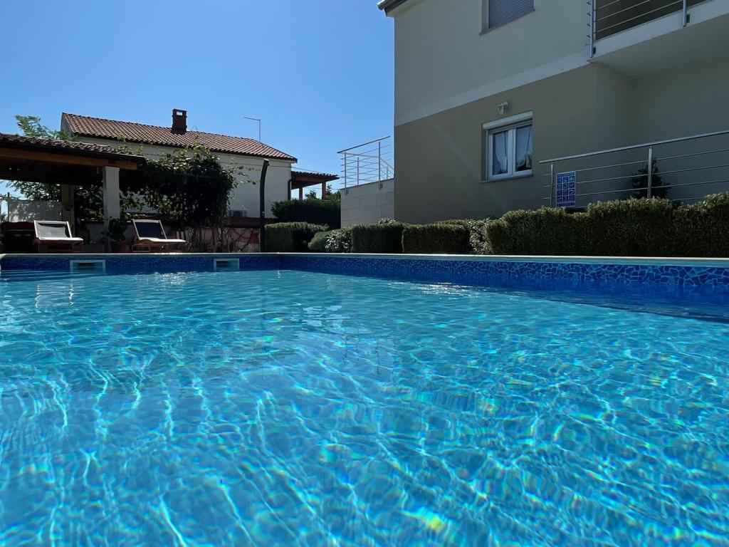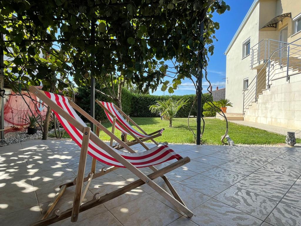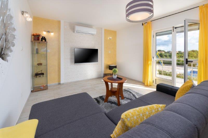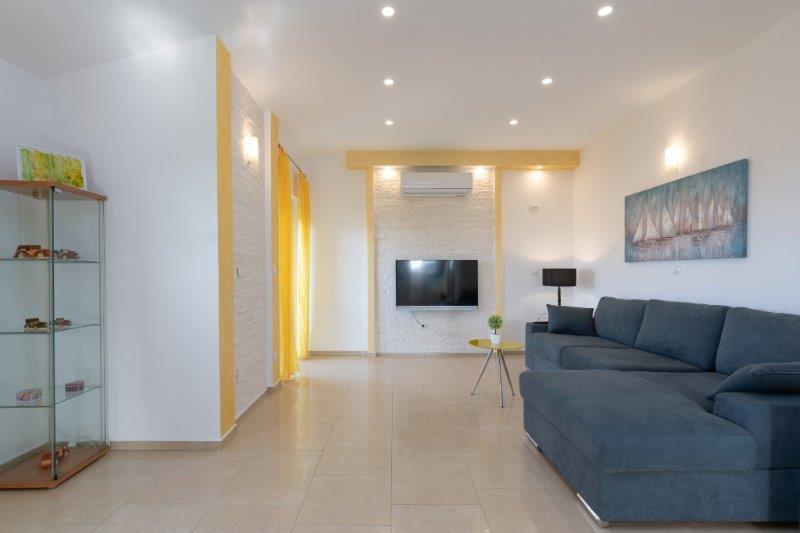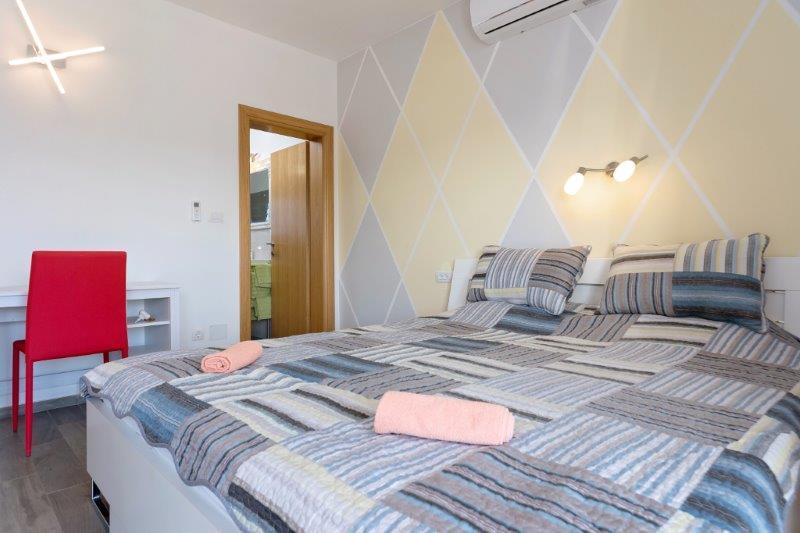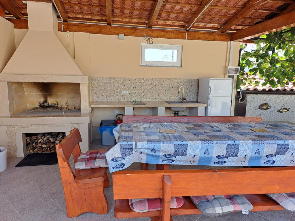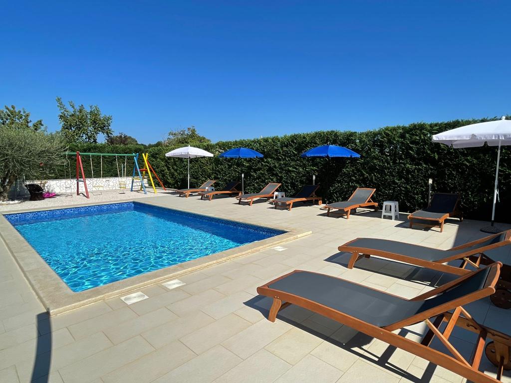 Wij zijn gevestigd in het kleine stadje Kaštelir, 10 km van Poreč. Het huis bestaat uit twee afzonderlijke appartementen, één op de begane grond, de andere op de eerste verdieping, het huis wordt als geheel verhuurd. Elk appartement bestaat uit een woonkamer, keuken, twee slaapkamers met elk een eigen badkamer. Elk appartement beschikt over 3 airconditioners, één in de woonkamer en één in elke kamer. Het appartement is voorzien van alles wat u nodig heeft voor een aangenaam verblijf. Buiten is er een kinderspeelplaats met schommels, een trampoline en een tafeltennistafel. De tuin is geheel omheind, u mag uw hond meenemen. Voor honden rekenen wij een toeslag van 12 euro per dag. Buiten beschikken we over een zwembad van 8x4m, ligstoelen, parasols en een zomerkeuken met barbecue. Voor het appartement hebben we 6 parkeerplaatsen, waarvan 2 overdekt. Vanwege andere verplichtingen bij ons is het in juli en augustus alleen mogelijk om van zondag tot zondag te boeken, en in andere maanden is het minimum 5 dagen en kan de aankomsttijd elke dag van de week zijn. Het huis is ideaal voor 8 personen, maar kan ook 10 personen herbergen. Voor een extra persoon hanteren we een tarief van € 25 per persoon.