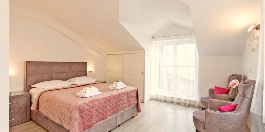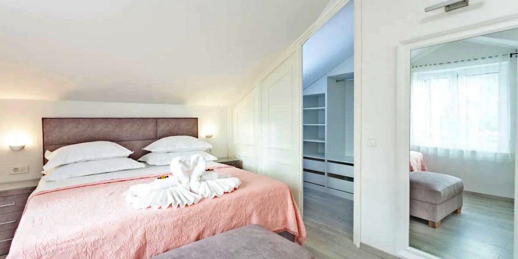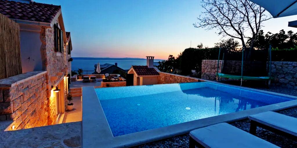 Het huis bestaat uit twee ruime kamers met elk een eigen badkamer. Er kunnen in totaal 4 personen slapen, en indien nodig kan er een extra bed voor één persoon worden bijgeplaatst. Uitgerust met alle benodigde elektronica (vaatwasser, wasmachine, tv in elke kamer, wifi), een ruime keuken, woonkamer en een buitenbarbecue waar u voor uw dierbaren de heerlijkste verse vis- of vleesgerechten kunt bereiden. Het huis beschikt over een zwembad met strand waar u heerlijk kunt genieten, ver weg van de drukte van de stad. Verder zijn er twee grote terrassen met zitmeubilair, verdeeld over twee verdiepingen. Op het hoogste terras heeft u uitzicht op de eilanden en de zee, alsof u ze in uw handpalm houdt. De woning beschikt tevens over 2 overdekte parkeerplaatsen. Naast het huis ligt het wandelpad van het Biokovo Natuurpark. Eén van de vele paden