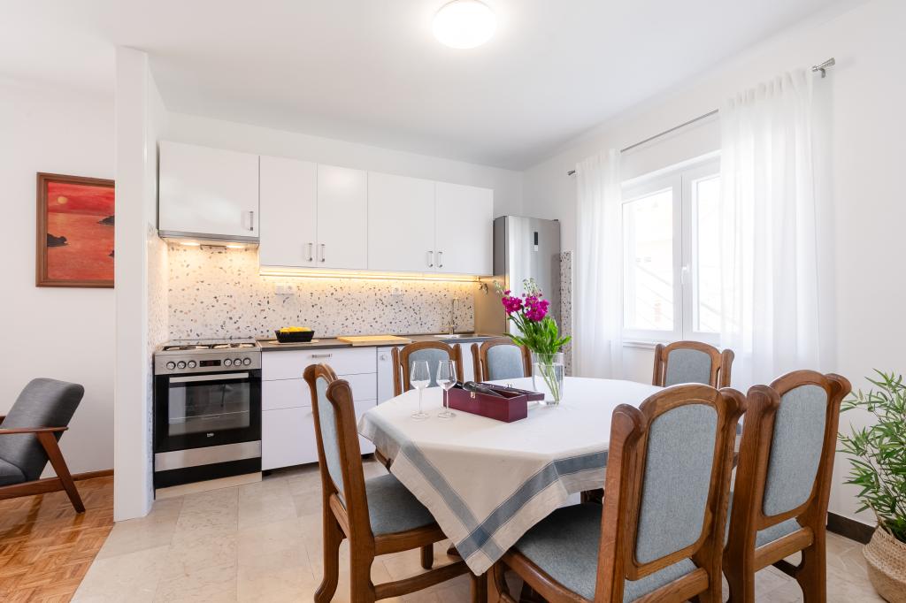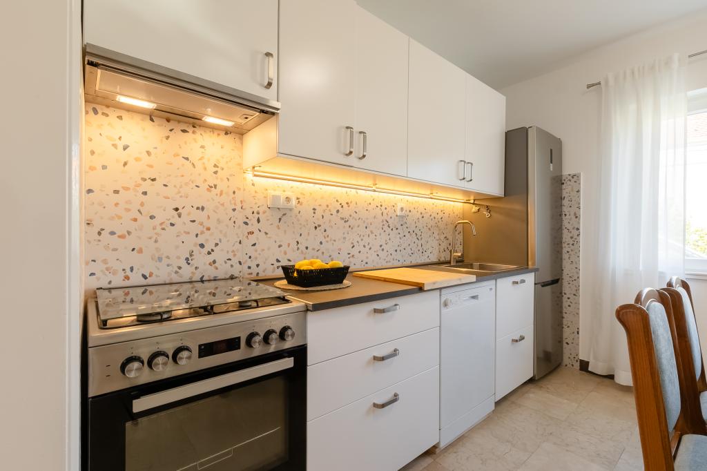 Deze ruime vrijstaande gezinswoning is gelegen in een rustig deel van Vela Luka, op minder dan vijf minuten van het centrum. De woning beschikt over 3 slaapkamers, een volledig uitgeruste keuken met vaatwasser en oven, een ruime woonkamer, een badkamer met douche, een ruim terras en 2 privéparkeerplaatsen. Gratis wifi, airconditioning in de woonkamer, een wasmachine, een smart-tv, een föhn en een strijkijzer zijn aanwezig. Handdoeken en beddengoed zijn inbegrepen. De gehele woning met een grote tuin staat tot uw beschikking. Het eiland Korčula is een paradijs voor fietsers en deze woning beschikt over een fietsenstalling.
