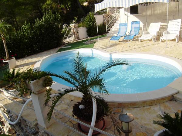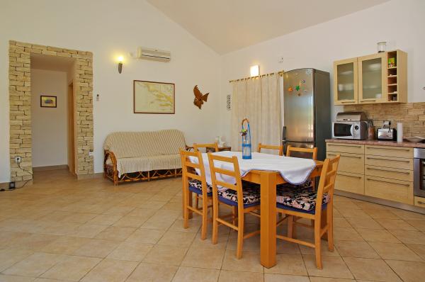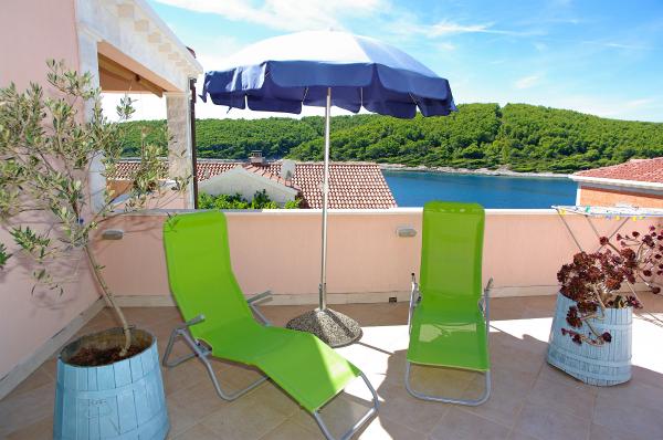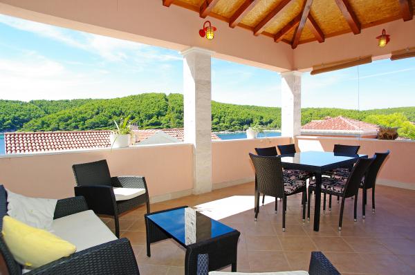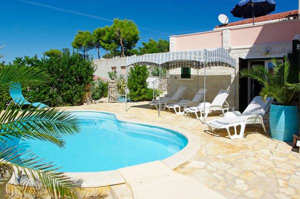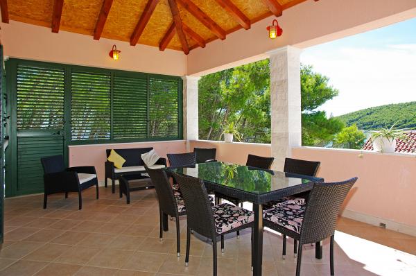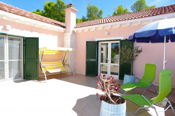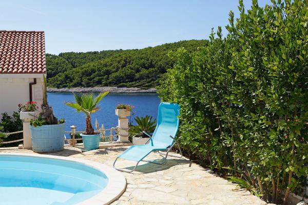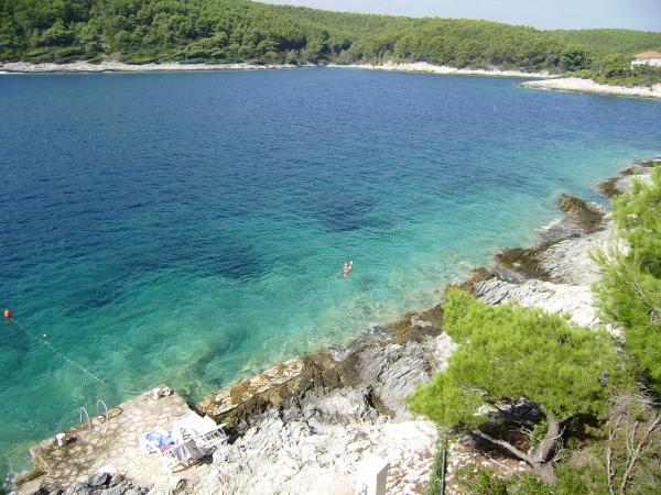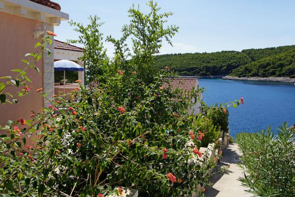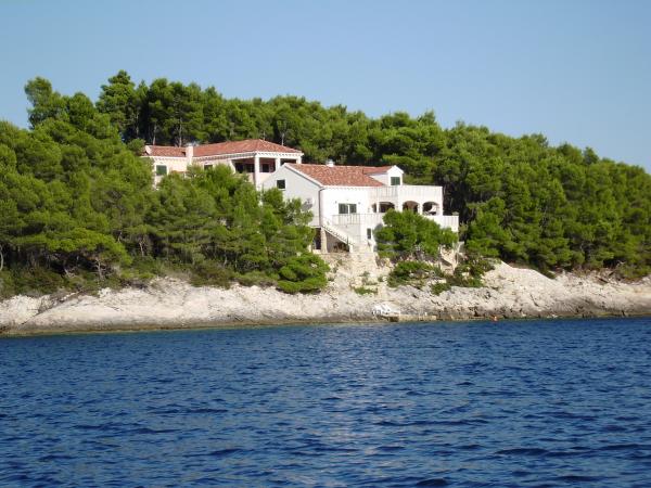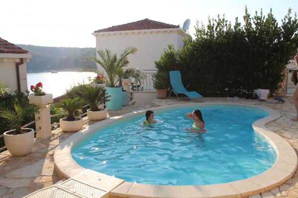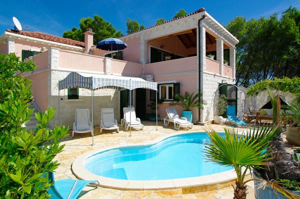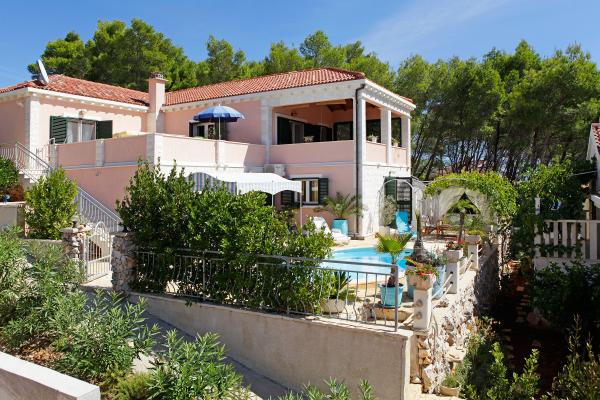 Op het eiland, op 8 km van Vela Luka, in de baai Triporte, aan de zuidwestkust van het eiland met pijnbomen naar de zee, met kristalhelder water, de prachtige onderwaterwereld en de prachtige rots- en zandstranden gelegen Villa Rosada met uitzicht op het zuiden, westen en het oosten. Aan de voorzijde van de villa is een zwembad met zonneterras en een terras met palmbomen, laurier, wijnstokken en bloemen. Het zwembad heeft directe toegang tot de zee is slechts 20 m, met een bijna prive-strand en Mulet voor het afmeren van het schip. Op de eerste verdieping zijn twee slaapkamers met een tweepersoonsbed en een eigen badkamer, een grote woonkamer met open keuken met uitgang naar het overdekte terras voor de zomervakantie, dineren, en ook om een ander groot terras om te zonnebaden en de trap naar het zwembad. Op de begane grond is een slaapkamer met drie bedden, een badkamer en een grote kamer met open haard, waar het zwembad zich bevindt, en een bank die kan worden getrokken in een bed. Alles is voorzien van airconditioning en volledig uitgerust (wasmachine, suđerica, tv, draadloos internet en alle keukenapparatuur). Beveiligde parkeerplaats voor 2 auto's.