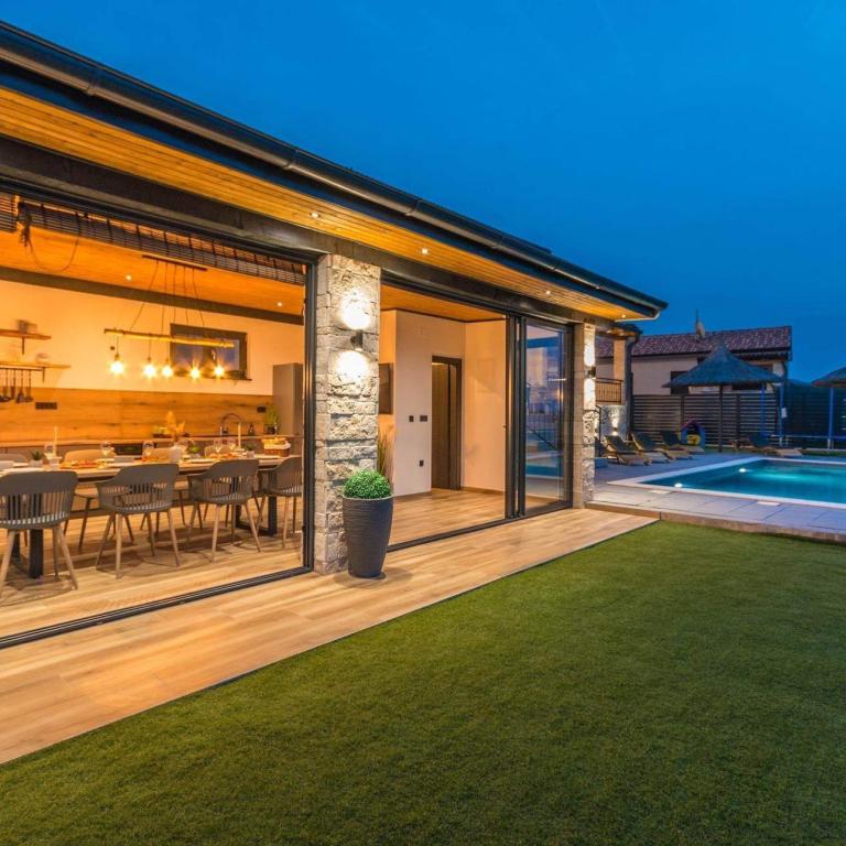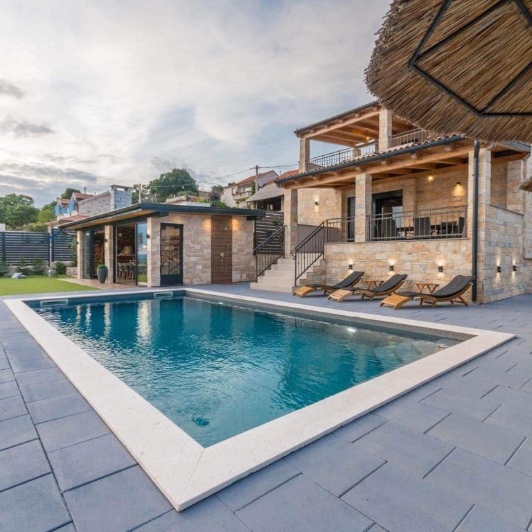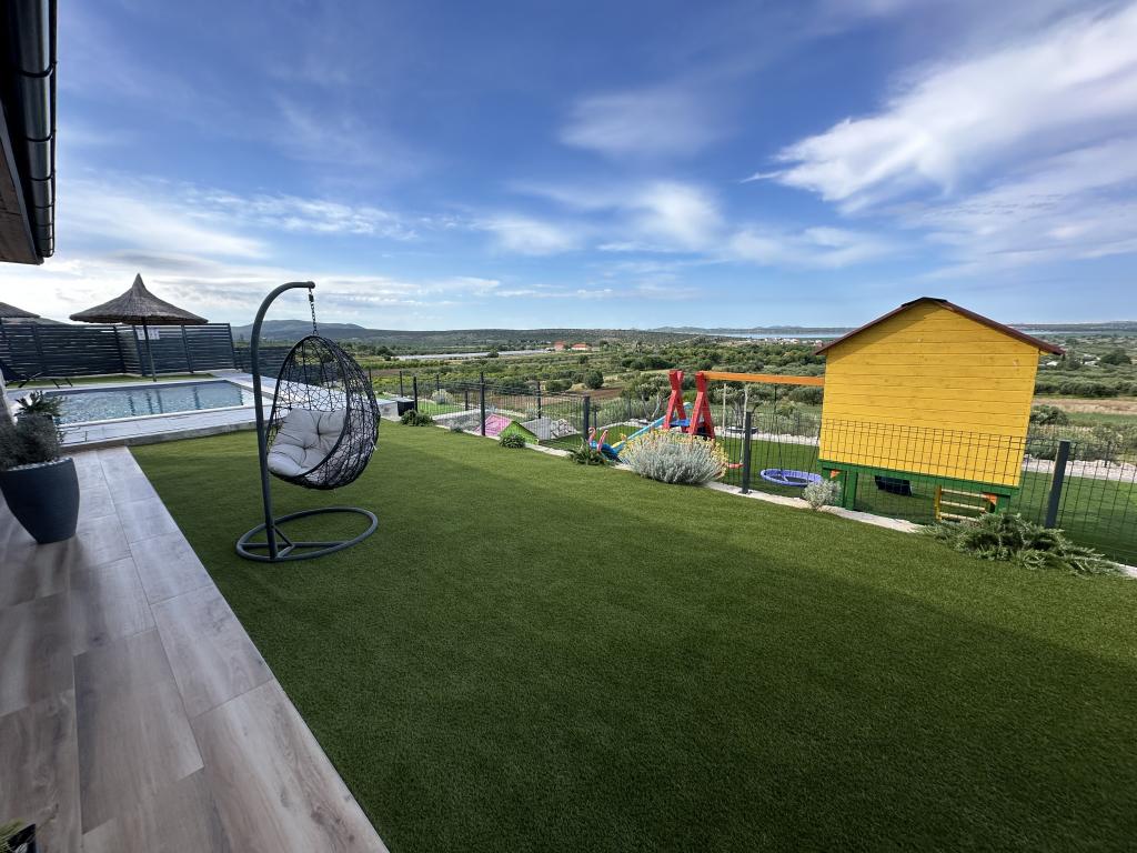 Villa La Vrana ligt op een prachtige locatie vlakbij het natuurpark Vrana-meer. De unieke ligging van deze accommodatie zal u versteld doen staan met het pittoreske uitzicht op het meer en de zee. Met een oppervlakte van 130 m² biedt de villa plaats aan 8 personen in 3 modern ingerichte slaapkamers. Op de eerste verdieping bevinden zich 2 slaapkamers en een badkamer met ligbad. Op de begane grond vindt u een luxueus ingerichte woonkamer met een prachtig uitzicht op de omgeving, een modern ingerichte en uitgeruste keuken met eethoek. In de woonkamer staat een slaapbank die kan dienen als extra bed voor 2 personen. Op de begane grond bevindt zich tevens een slaapkamer met een tweepersoonsbed en een badkamer met douche. Op de binnenplaats van de villa ligt een verwarmd zwembad van 8 x 4 meter, dat zowel in het voor- als naseizoen verwarmd is. Ligstoelen en handdoeken zijn beschikbaar. Er is gratis parkeergelegenheid, een laadstation voor elektrische auto's en een grote speeltuin voor kinderen op het terrein van de villa. Naast de villa kunt u ontspannen en heerlijke maaltijden bereiden in de volledig uitgeruste buitenkeuken met barbecue.