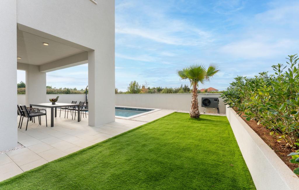 Het huis van circa 270 m² is gelegen in Zaton, 12 km ten noordwesten van Zadar. Het gebouw is nieuw en werd in juni 2025 opgeleverd. Op het omheinde terrein bevinden zich 4 parkeerplaatsen, 2 laadstations voor elektrische auto's, een verwarmd zwembad van 30 m² en een groot terras waar u tot in de middag van de schaduw kunt genieten. Het huis bestaat uit twee identieke appartementen, elk met een woonkamer, een volledig uitgeruste keuken, 3 slaapkamers, 2 badkamers en een extra toilet. Alle kamers zijn voorzien van airconditioning en een smart-tv. Het huis is geschikt voor 12 personen. Op elke verdieping van het huis staat een PS5 in de kinderkamer. Op het dak bevindt zich een terras met uitzicht op zee, een extra kitchenette, tuinmeubilair en een jacuzzi om overdag en 's avonds van te genieten. U kunt van onze accommodatie genieten met familie en/of vrienden, samen, maar ook apart (ieder in zijn eigen appartement) wanneer u dat wenst. Overdag kunt u genieten van het zwembad en de schaduw van het lager gelegen terras, terwijl u 's avonds kunt ontspannen op het dakterras.